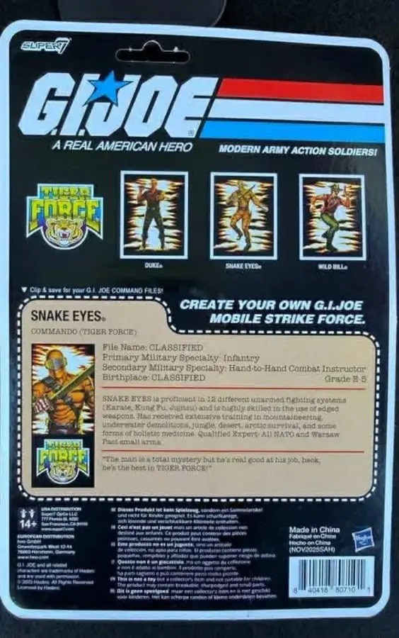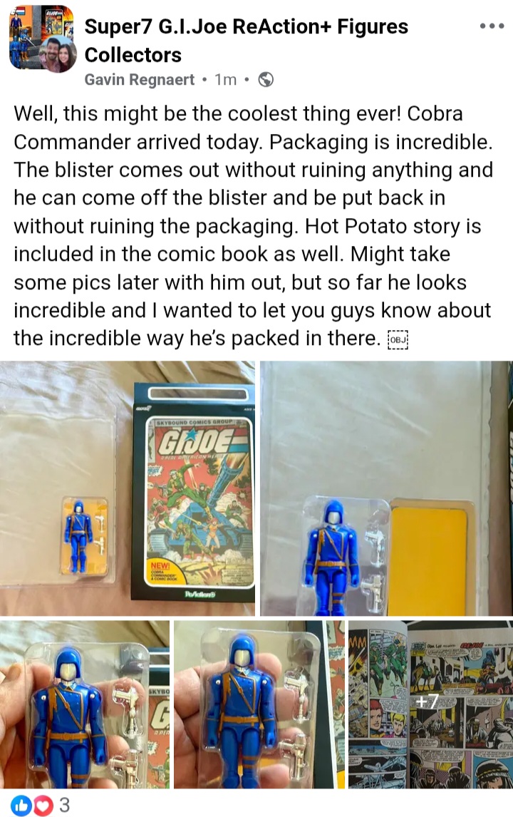 >>11740608Comparatively Hasbro wants almost the same price for recent "deluxe" Star Wars TVC figures. People can split hairs on the comparison, but Super7 is licensing the product and the pack in comic is a nice added value, when comics are now around the $5 range these days, so feels justifiable. The presentation is nice too. I do think that Super7 if they were only doing Joes could cut the prices down, because they're selling them at a much higher volume than any of their other Reaction and Reaction+ figures, and people are buying them, to the point of figures getting second runs.