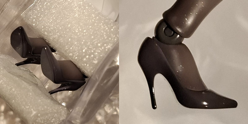 I wish mine had snapped during shipping. Then at least the heel would be in the box and I could glue it back on. Mine must have snapped before it was boxed up because there were no broken pieces in the box. And since I knew this might happen I made sure to be careful opening her.