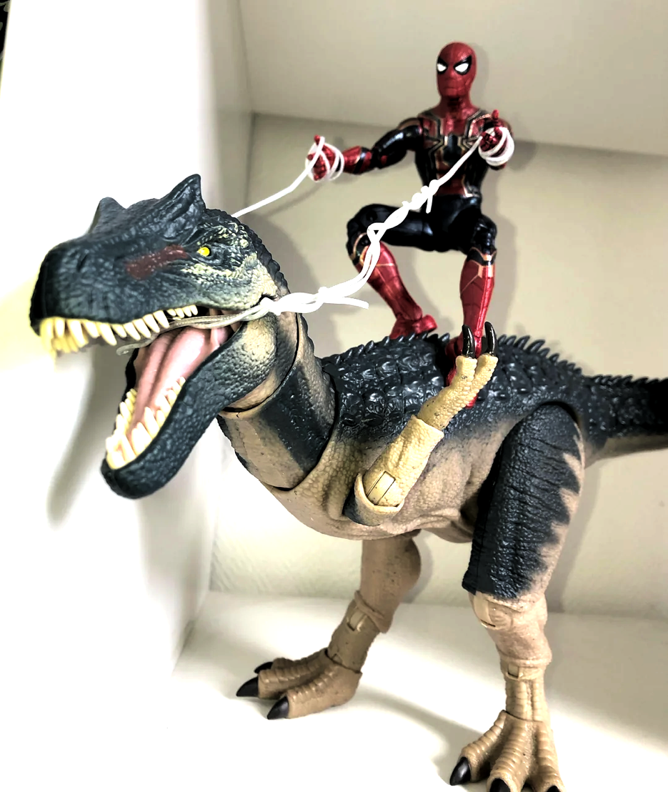 What's a good, inexpensive Dino ($15 ideally, or less) that articulates some, but I don't really need anything - it's just a background prop for a Spider-Man, or other figures, to sit on top like PICREL or to fight.