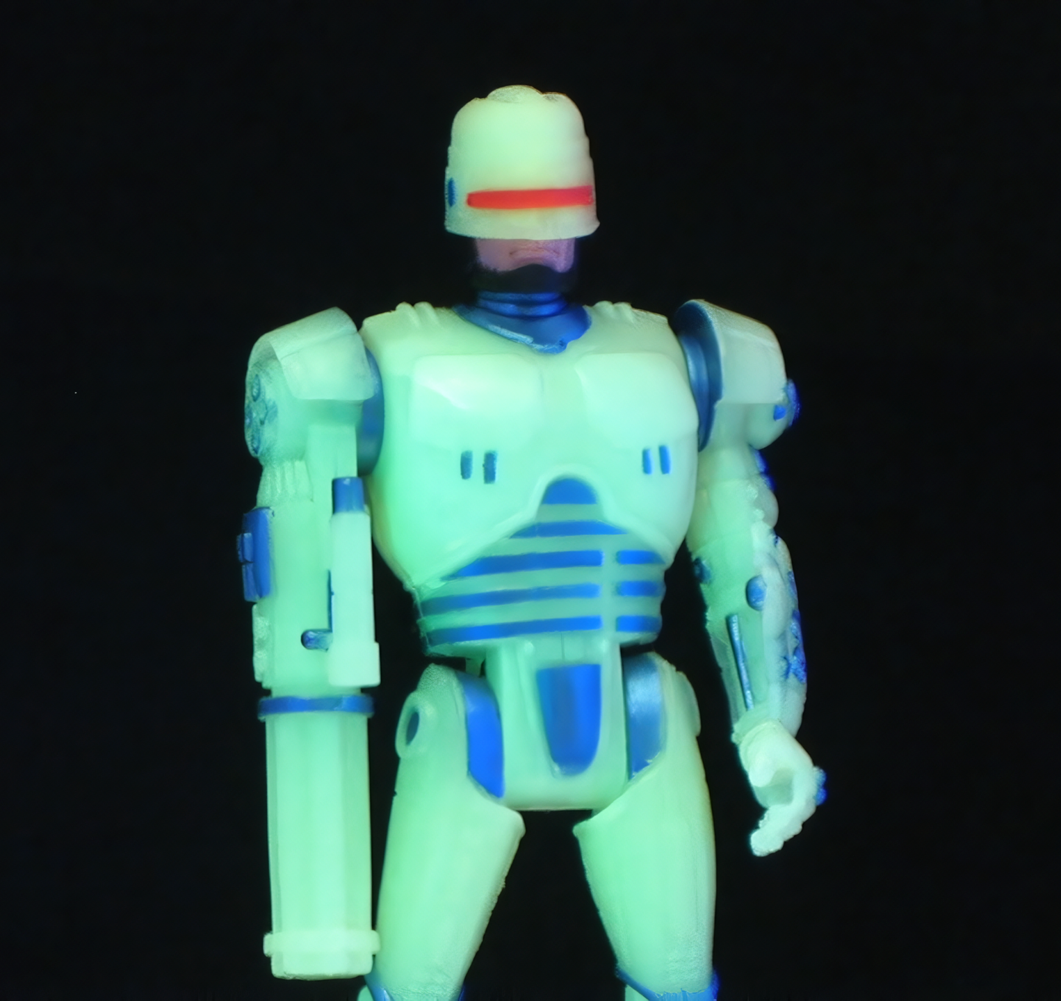It pisses me off no-end that there aren't more modern figures, I know we got the Re-Action figures and they're "okay" but Robocop is such a toyetic property, the could easily have done another cartoon or something (just started watch Alpha Commando and that shit's awesome, reminds me of Spider-Man Unlimited). I have this Nightfighter Robocop (image taken from a Pixel Dan review) and I love this little bastard, I even have the Re-Action version, which is the only tribute version that keeps the metallic blue parts, I love glow in the dark figures and God dammit I'd love to see a modern update. Fuck this boring ass future with its lame mass-retail "action" figures.