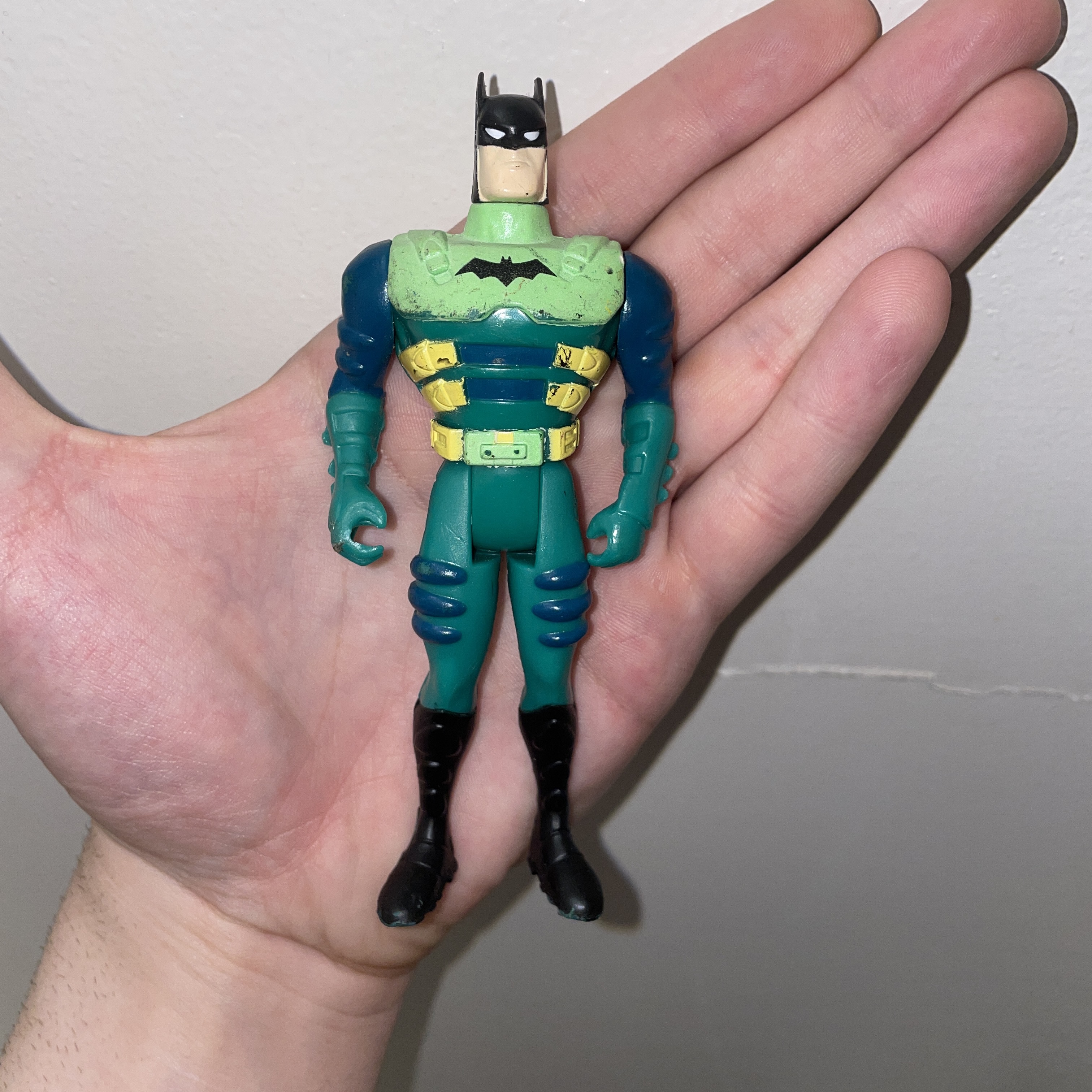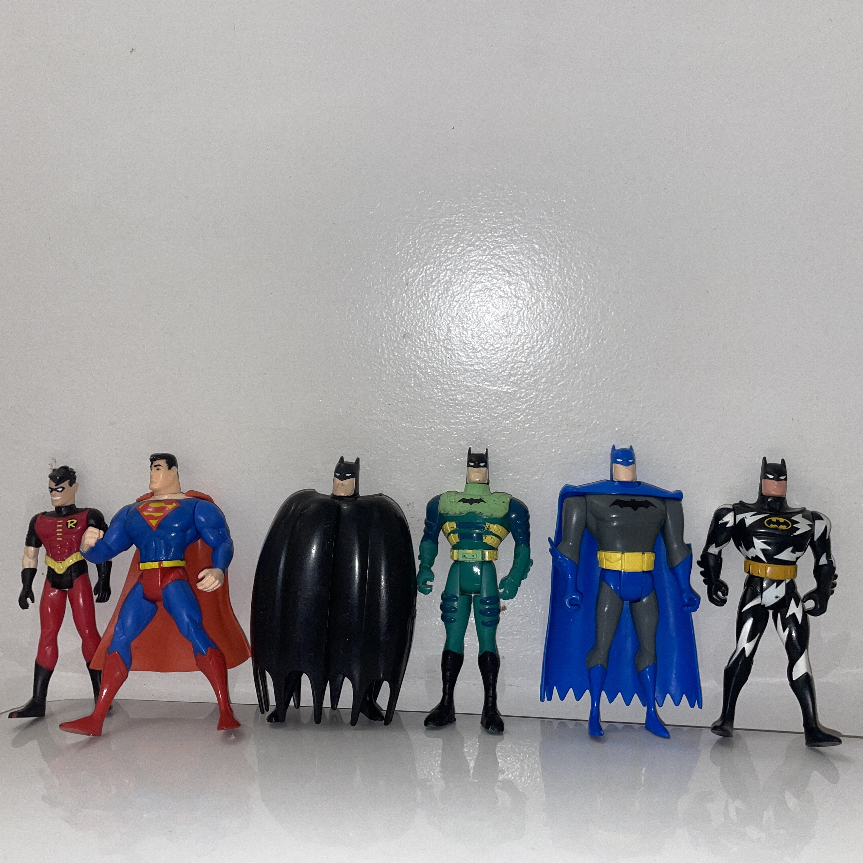 Recently found my favorite box of toys from my older cousins’ house … could anyone tell me more about these various Batmen? I’m guessing late 90s/early 2000s? I love the colors.