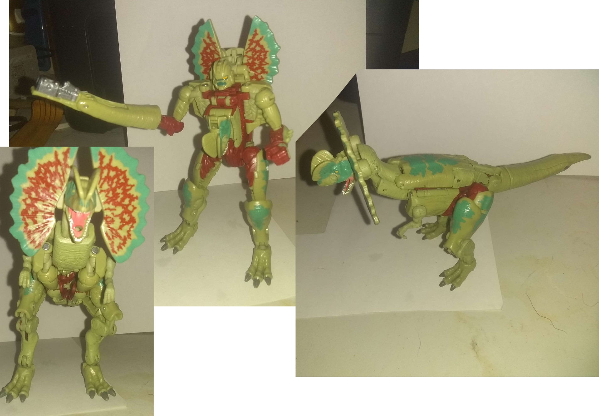>>11762073I would also love to see organic Scorn. or G1 Scorn for that matter.>>11762092thank you. yeah, one thing we can say about Dilophocon is the designer GOT the old beast wars aesthetic. she's (I mean I'm calling this OC a guy, but whatever) very Guyver. And her transformation is basically that of Iguanus, other than the legs, so she FEELS classic.I only wish I was good enough at stenciling to add more of the 'cilantro' in the darker green, but meh.