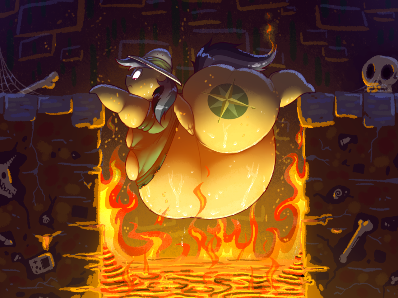 Imagine a falling ceiling of doom, but it's a fat pony instead.