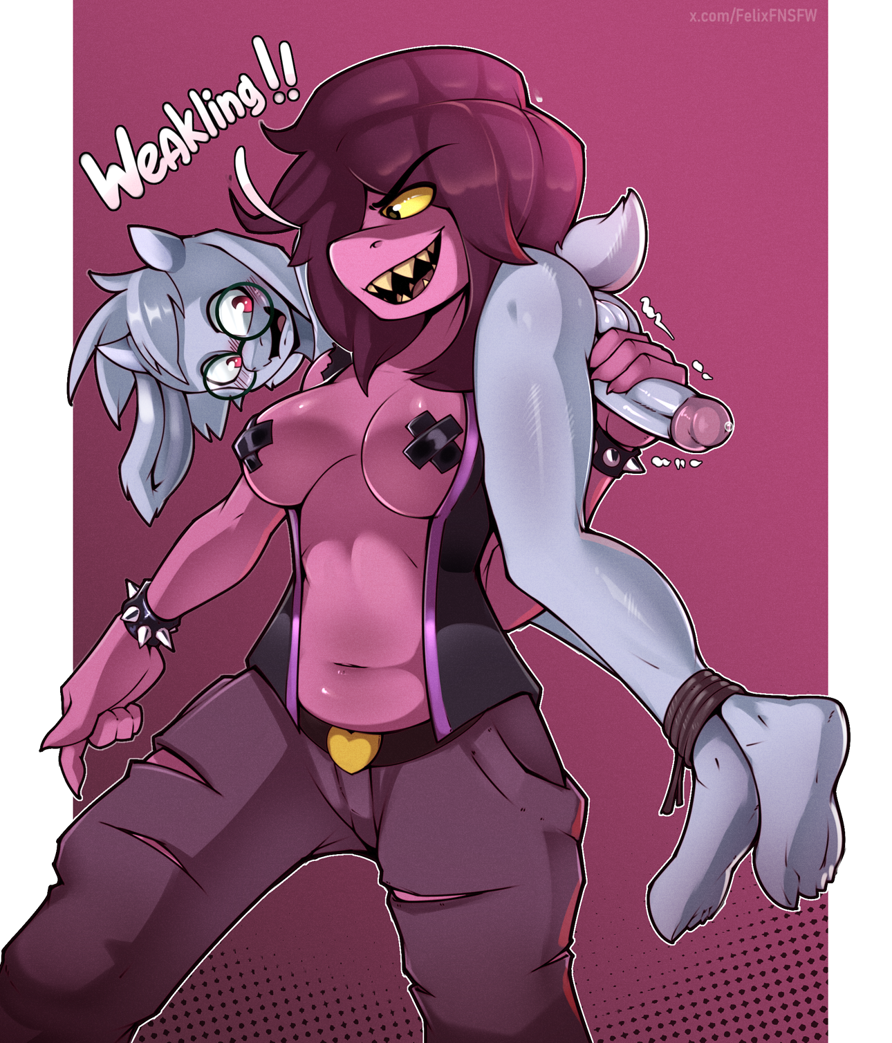 Could I request a thick sweaty gator woman with fat tits, a thick tail, and wearing a ribbed tanktop, hoodie, and denim short shorts? I've got a brainworm I want to work out.