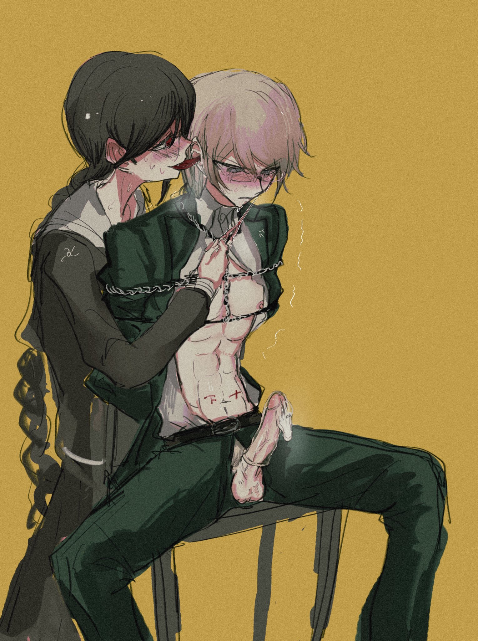 >>80656416At what point does it become gay? You can barely see the girl in this picture but there are two drawings of the guy by himself.