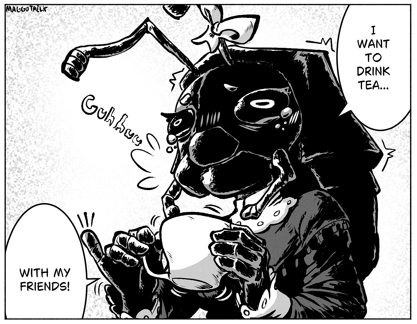 >>80210926>Nina points over to the caravan surrounded by Tinkatuffs Oh no! It's that one over there. >Looking at the lineup Nina heads over to the caravan and rather than waiting in line, uses her tendrils to sneak one of the bottles, leaving behind a pile of coins in it's place >Heading back and having nicked a couple of cups too I think I might as well keep a bit more around. >Pouring out a cup she hands it over to SanaaYou want some as well Zed?>Zed shakes his head I think I'm good.