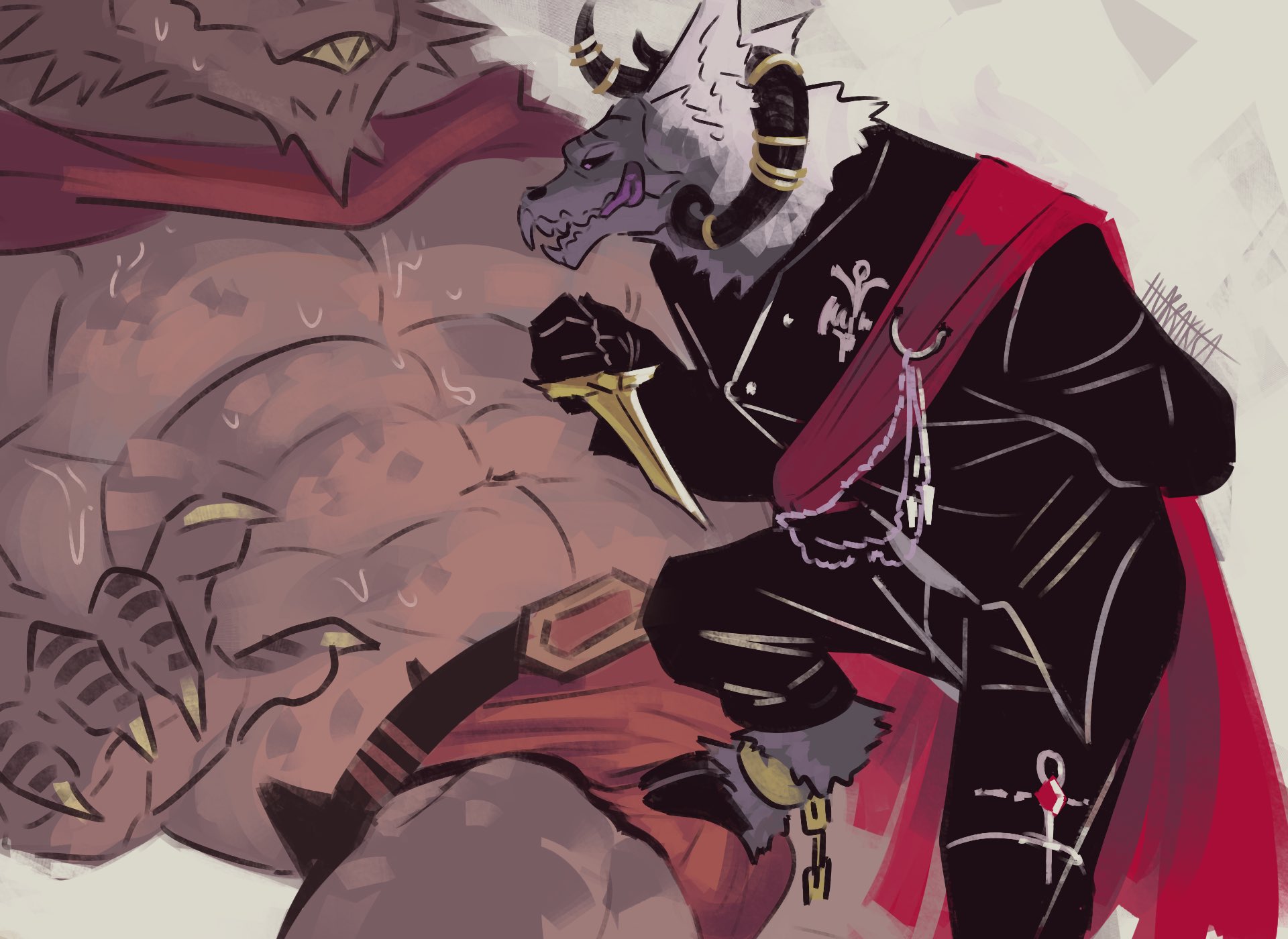 >>80454338>You step up from your shared throneCo-ruling a dungeon with your gmad bf sounds so cool, kind of a dream job actually. Hopefully the throne room is empty, I've always thought that fucking on a throne would be super hot, regardless of which one of us is bent over it.