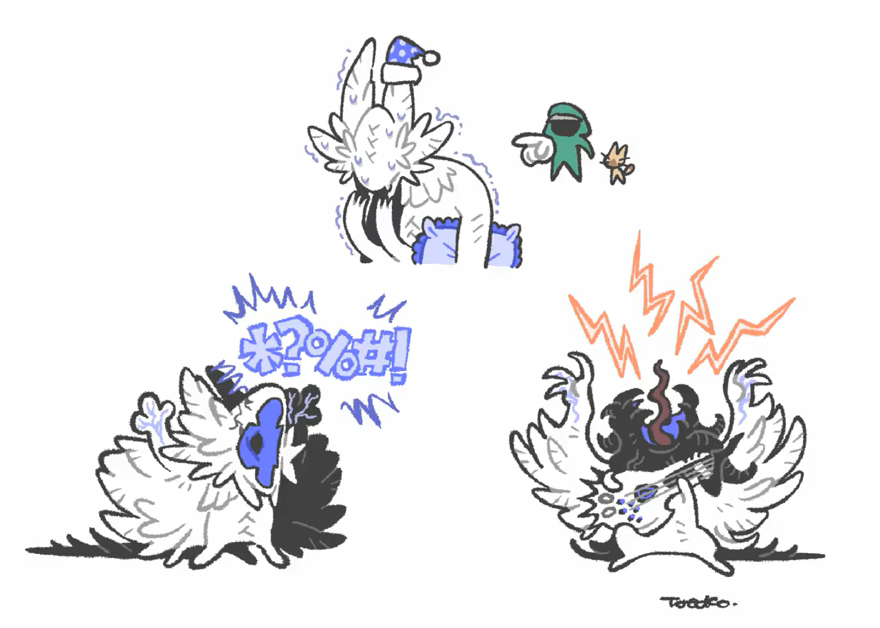 Imagine a future where the humans felynes and wyverians are gone, and the only options for civilization are Seikret, Kulu ya ku, Shaka and Wudwuds. What a mess, huh?