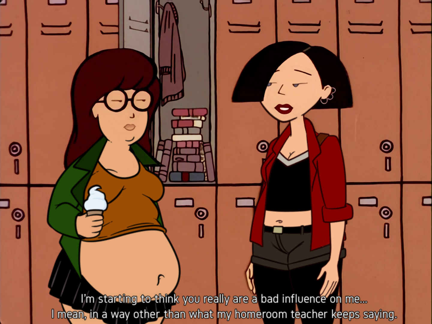>>80651335And Daria is (perhaps unintentionally) manipulating Jane to not lose the weight while it’s still minimal >Thinking about your figure? I didn’t know you were trying out for the Fashion Club>I didn’t know you’d been listening to Quinn for advice>Track team? I guess you’re trying to be one of the popular girls huh That combined with the steadily increasing supply of pizza and Soda pop will ensure Jane doesn’t nip this in the bud and she eventually crosses the threshold into being a fat girl