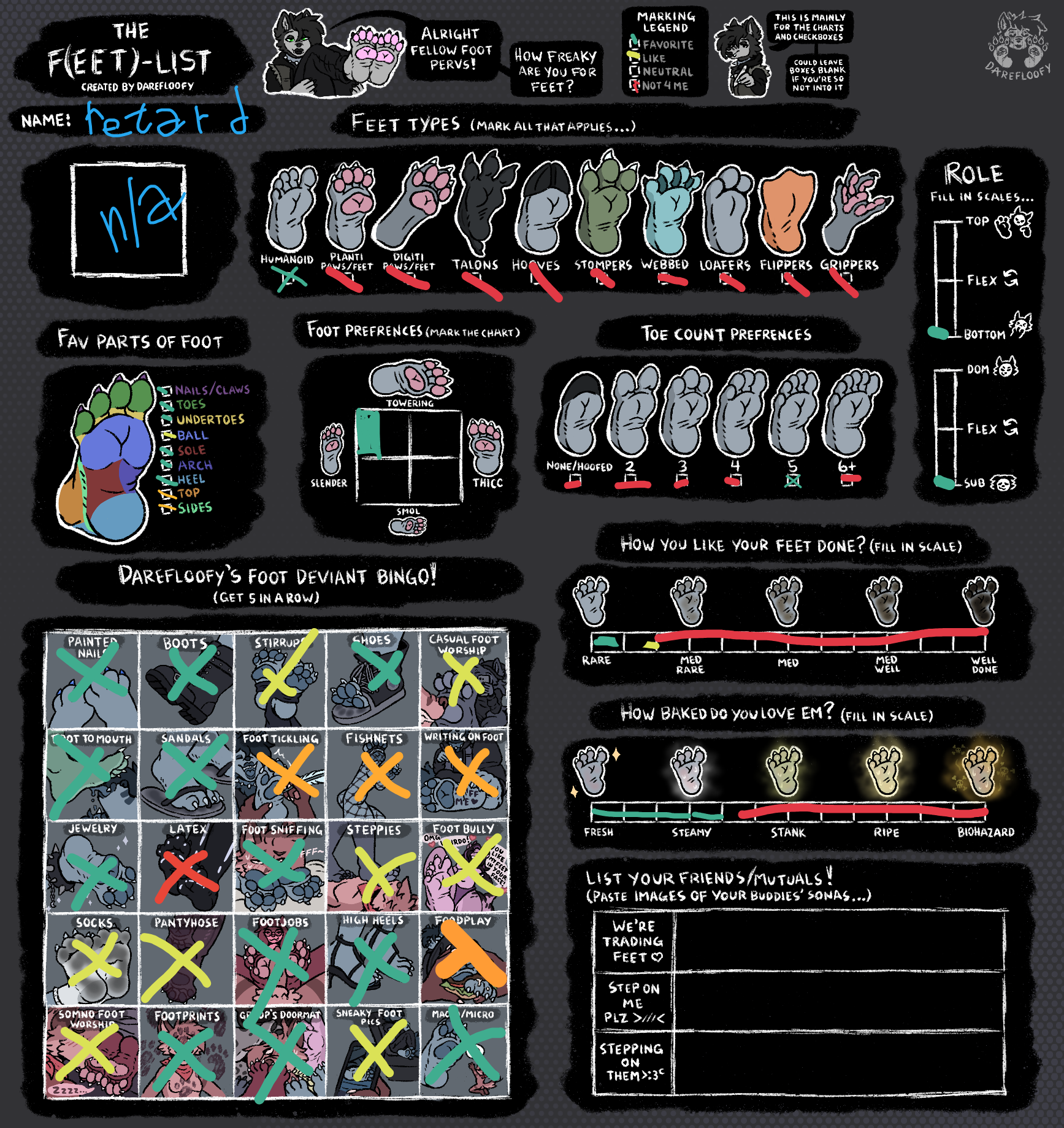 >Goat sona>Is satanist>Dragon sona>Is autistic>Cat sona>Is femboy>Fox sona>Is gay>Dog sona>Is puppy girl/boy>Protogen sona>Makes Windows jokes>Mouse sona>Is micro/macrophile>Horse sonaComment too long. Click here to view the full text.
