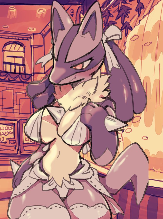 >>80220853Your Lucario saw you looking at those lingerie outdoor signs a little longer than needed while passing through a town in your journey. When you stopped by the next town to rest and sleep, Lucario showed up on the same type of lingerie, embarassed, but hoping that you'd finally notice her as more than a Pokémon friend.