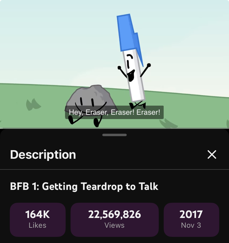 Big Marathon to 2026 EditionPrevious: https://desuarchive.org/trash/thread/79689682https://www.youtube.com/live/YqodQKazDqI?si=-vXQ41nItrIrWYjp WHERE ARE YOU GUYS?! THERE’S A MARATHON FOR THE 100TH EP OF BFDI RIGHT NOW!>What are object shows?Object Shows are web cartoons featuring object characters, read more here: https://tvtropes.org/pmwiki/pmwiki.php/Main/ObjectShows>I’m interested, what are some good object shows?>Battle for Dream IslandThe one that started it all! A competition between inanimate, anthropomorphic objects, for a grand prize at the end of the season, where the audience can vote to influence the fate of contestants!Comment too long. Click here to view the full text.