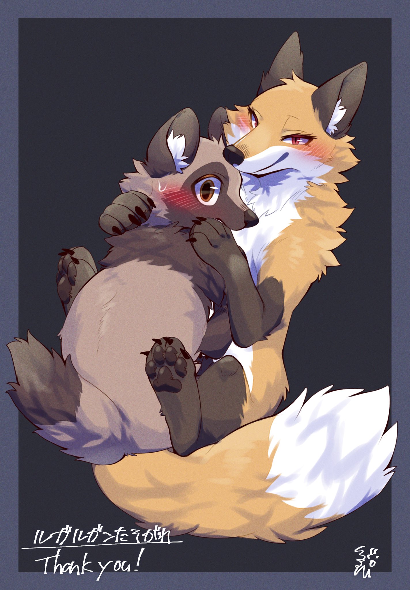 interestingly I've never seen an anthro racoon/fox couple anywhere in art so far