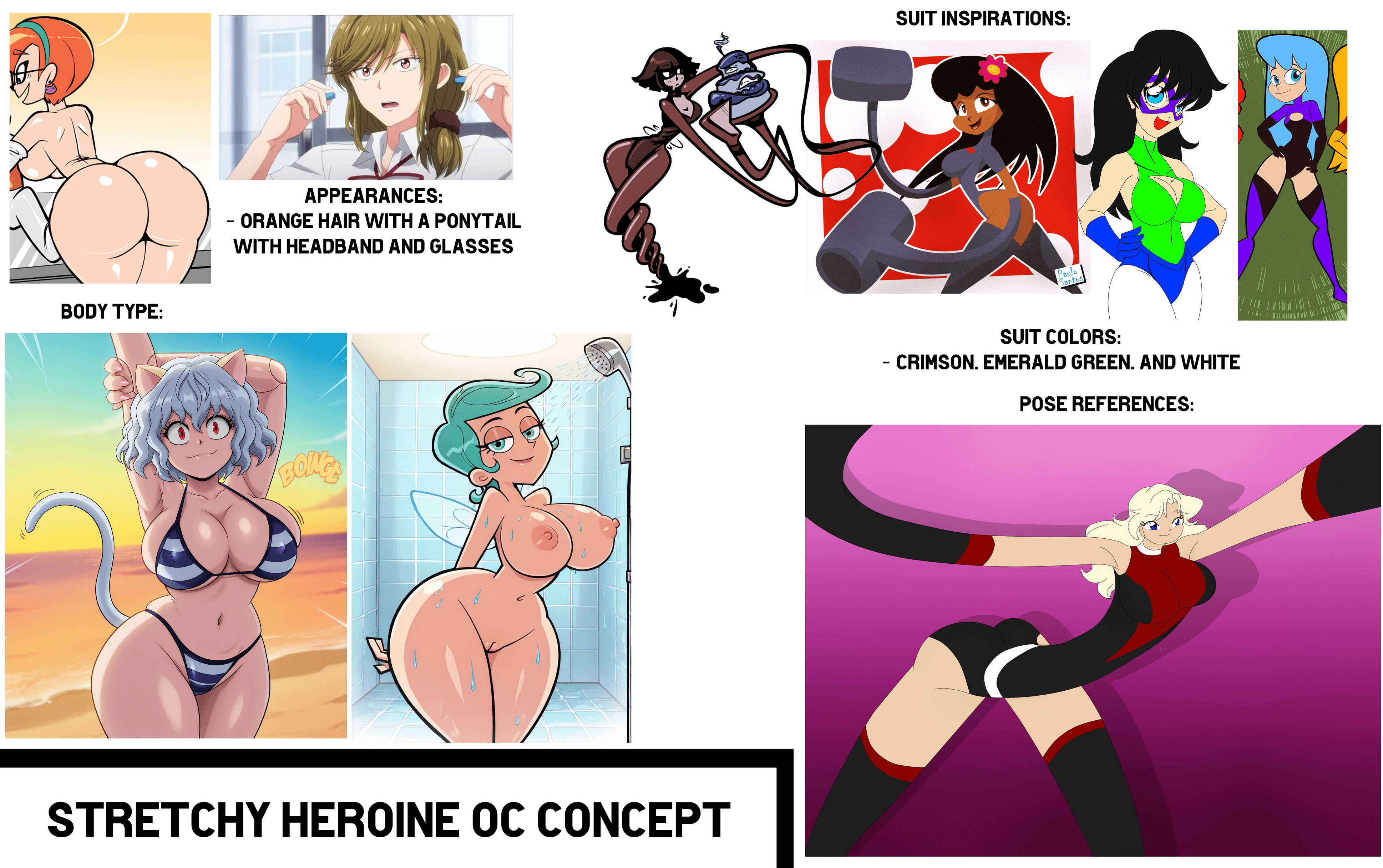 >>80309966Requesting an stretchy shapeshifting heroine?Notes:- She's in her mid 20's- She has freckles in her face and her wide ass as well- She has thick orange eyebrows- She's an scientist from Florida> her suit color is Crimson, White, and Gray> her height is 5'6