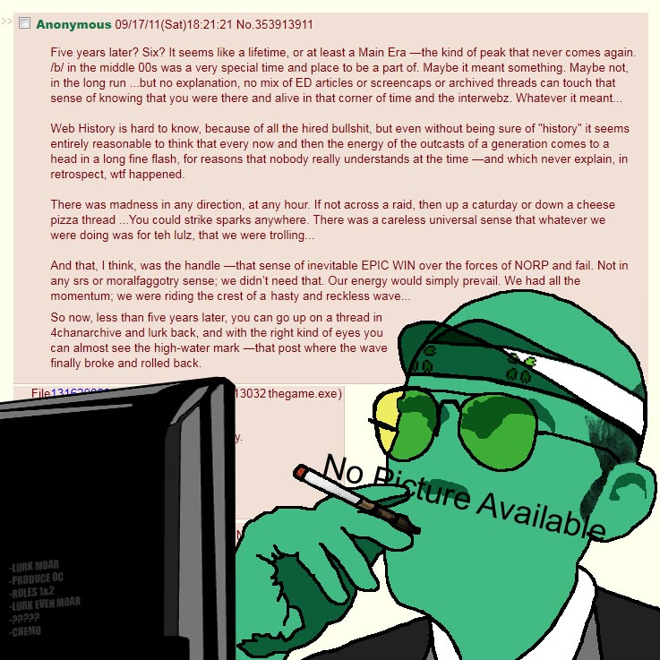 do you think the ongoing "XXX general" epidemic kills most image boards?with so many general topics i feel like people would rather just use a discussion board instead. long lasting topics that people can just "talk about topic" instead of hogging image board space that really should be saved for rapid fire topics or at least not things that have thread to thread discussionsalso thousands of repeated images lmao.