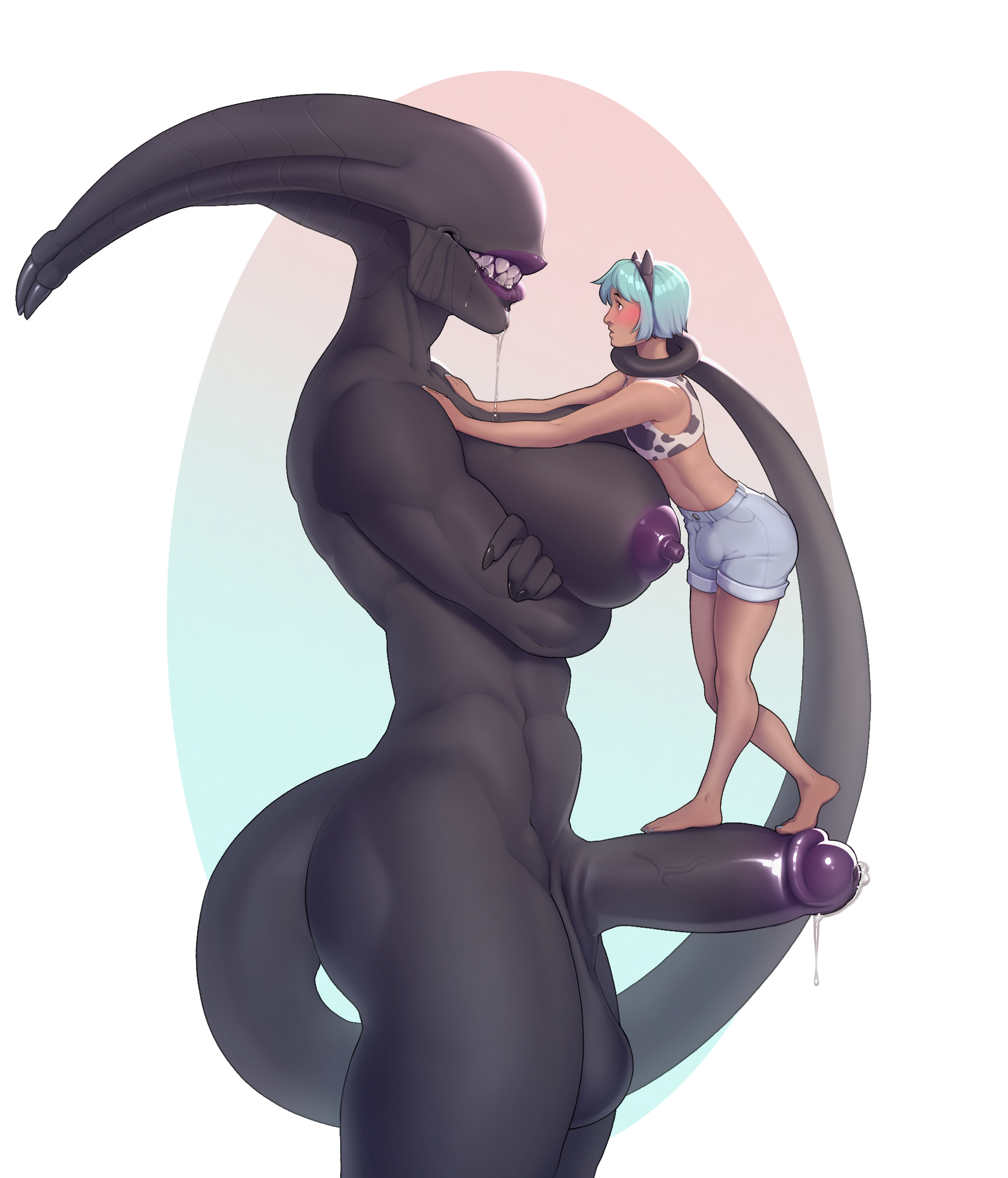 >>80464792Alphys was running some standard determination test on anon, but she quickly realized he was different from the other humans she met he constantly squirmed and sweat in her presence but chalked it up to social awkwardness. That was until she turned her back on him and heard the distinct sound of metal snapping and fabric tearing. She quickly turned her head to see anon's erection had torn completely through his pants exposing his enormous cock.