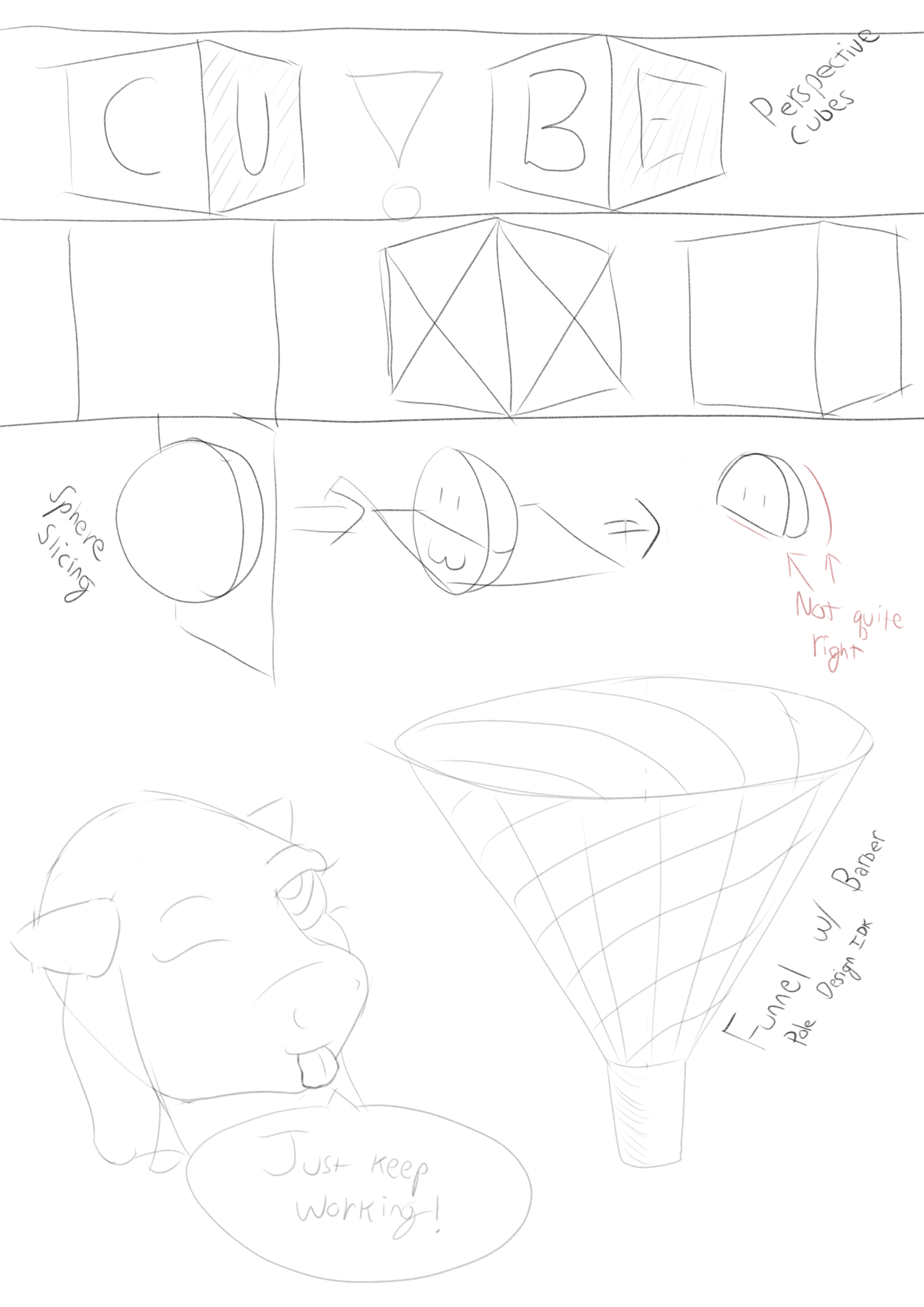 Good news /dig/, I'm bad at drawing! Leaving off the rest of the line practice but here's some cubes, spheres and a cone.When I'm drawing a cube face, should I be aiming for one uninterrupted line?