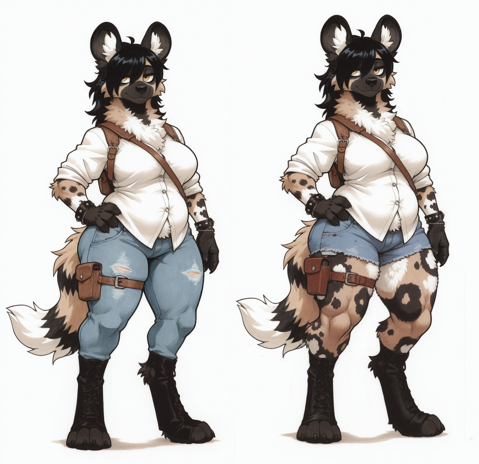 >>80161963Summer time her outfit is mostly the same. Except no jacket and on hot days she swaps out for some jeans she cut into shorts.