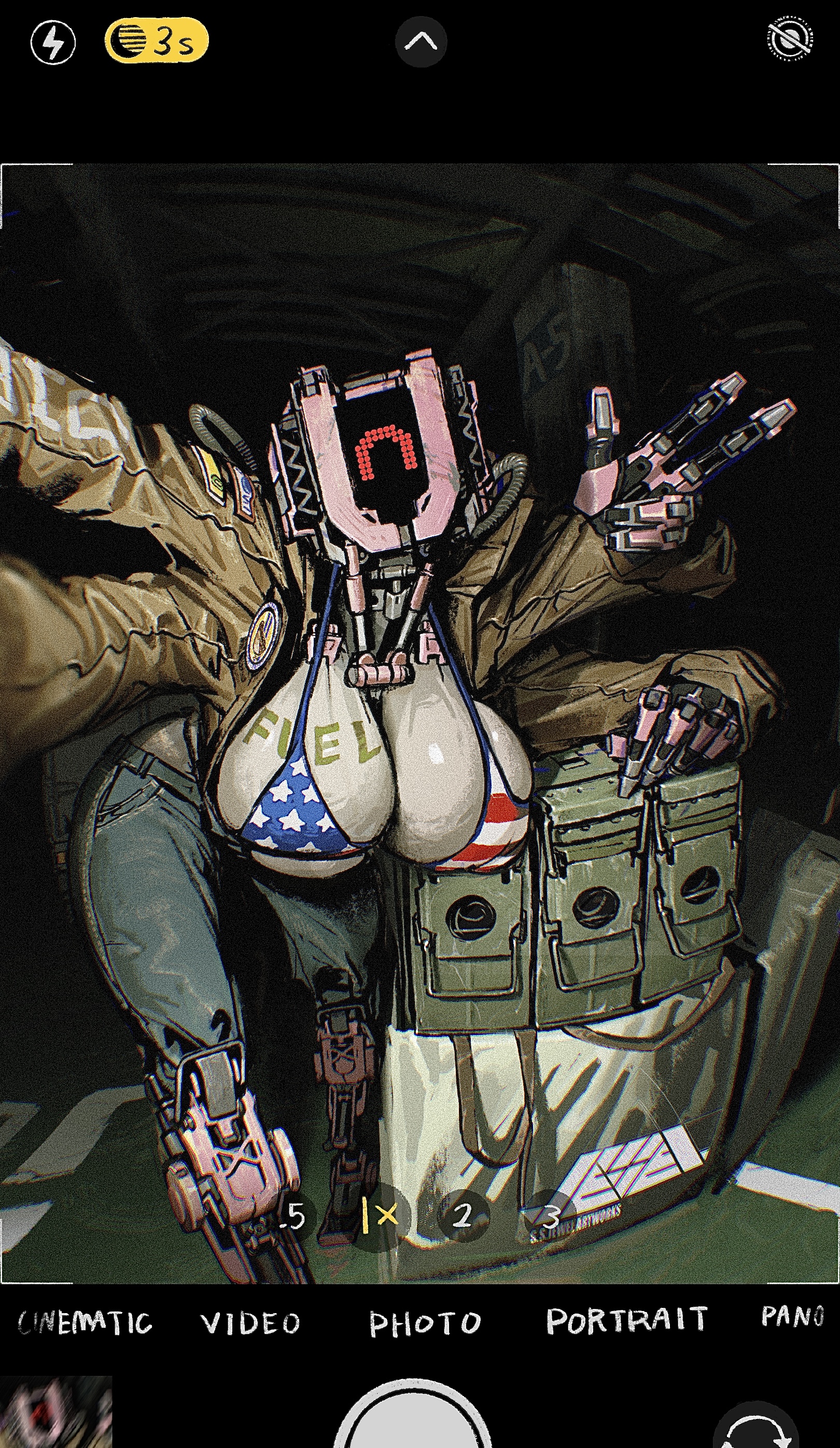 Request the rabbit foot changed to dog tags, the boots change to thigh-high military-combat boots, the gloves changes to fingerless military combat gloves, the male in the picture on the phone changed to Haru
