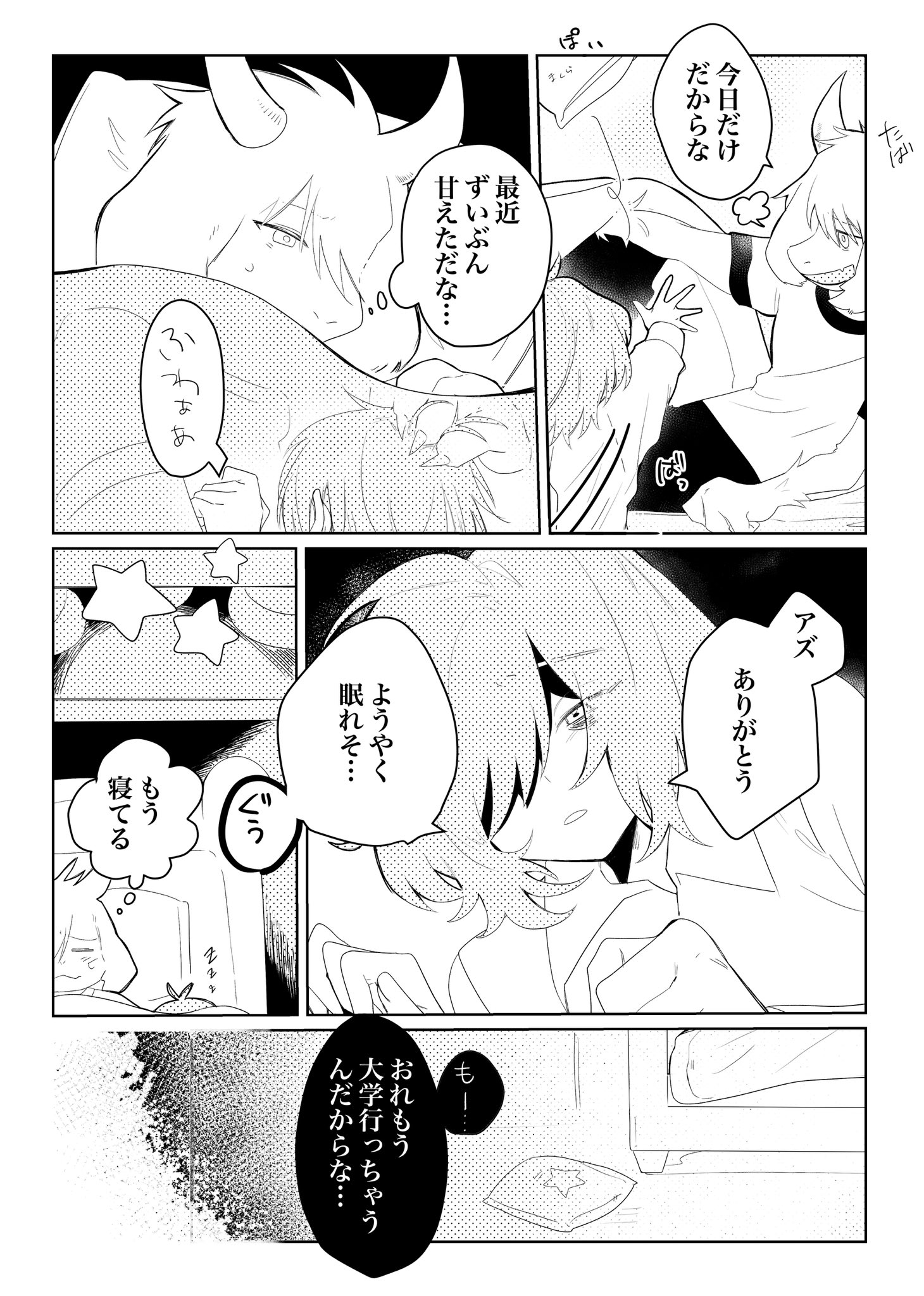 >>80453084Only for today*toss* (pillow)*reach*He's been pretty clingy lately...YaaawnAzzyThanksI can finally fall aslee...*zzz*He's already asleep'cause I...Comment too long. Click here to view the full text.
