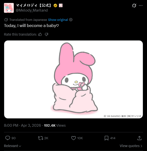 >>82094146I think their canonical birthdate is literally when they were made. My Melo is a hag, Kuromi is in the prime of her life