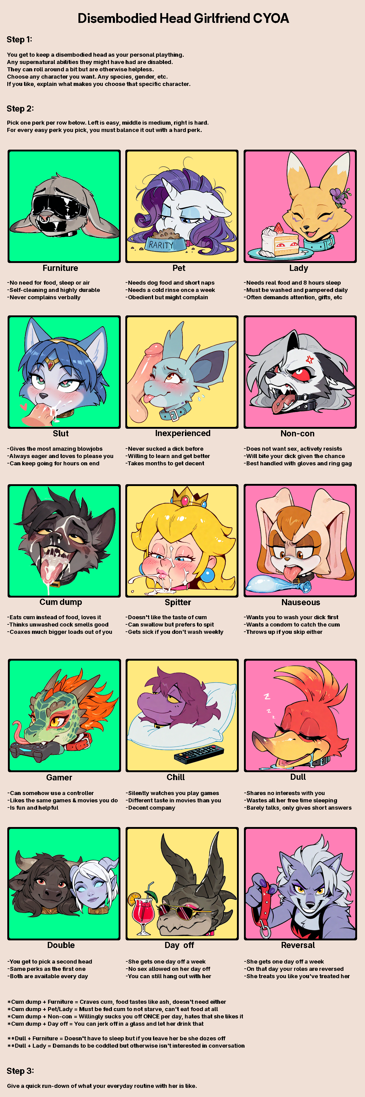 CYOA Refuge Thread - A thread for posting any and all CYOAs unpostable in /tg/'s /cyoag/ (and occasionally ones that aren't).Previous thread:>https://desuarchive.org/trash/thread/81970039Alternative link:>https://archived.moe/trash81970039Worksafe threads:>>>/tg/cyoa/cyoag/'s CYOA archives and related resources:>https://rentry.co/cyoagIncludes - but is not limited to - a F.A.Q. section and the personal archives of a number of authors.>https://cyoa.allsync.com/s/owWor64yLTngDk3An extensive Allsync archive that has both SFW and NSFW CYOAs.>https://infaera.neocities.org/Comment too long. Click here to view the full text.