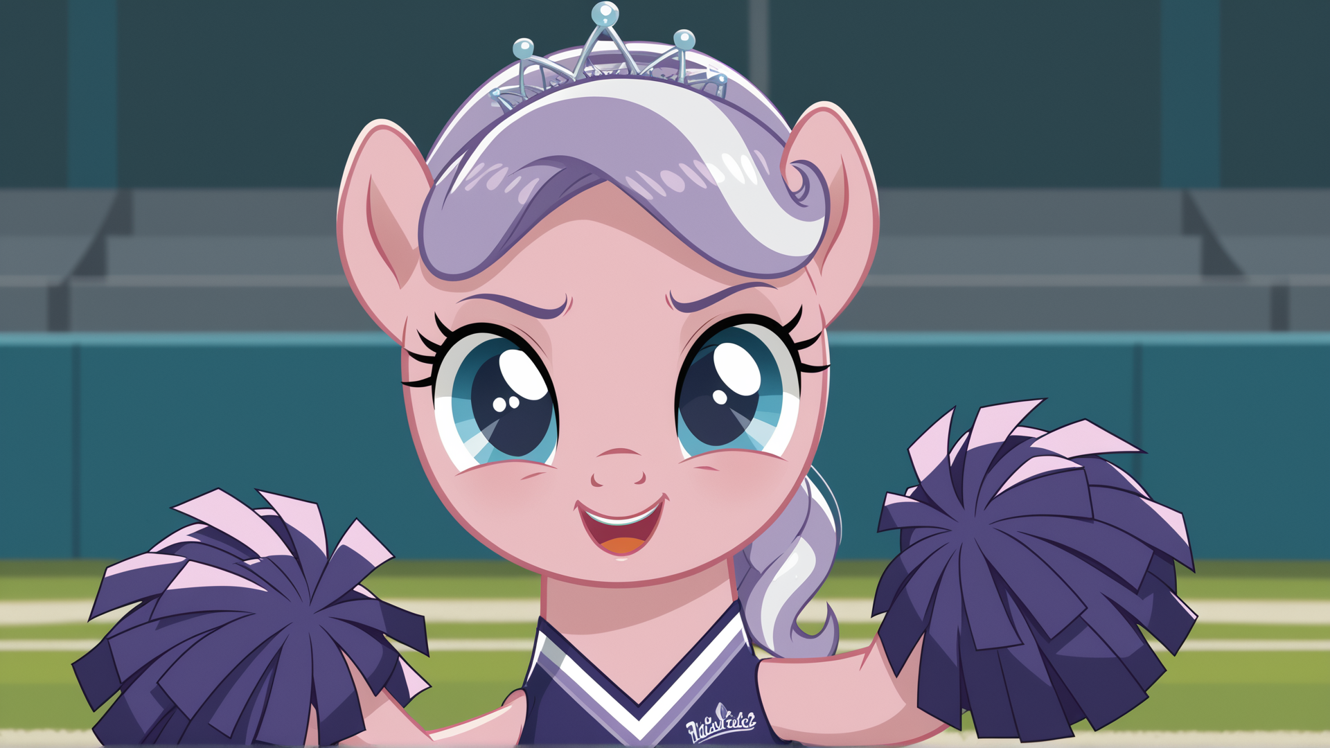 How does pony hold pompom