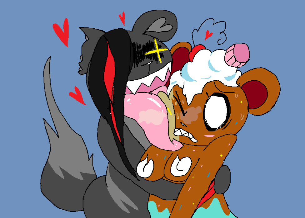 Requesting Hangrizz (left) eating Cheriontop (right) with smaller pieces scatteredIf candy gore isnt allowed, I'll delete