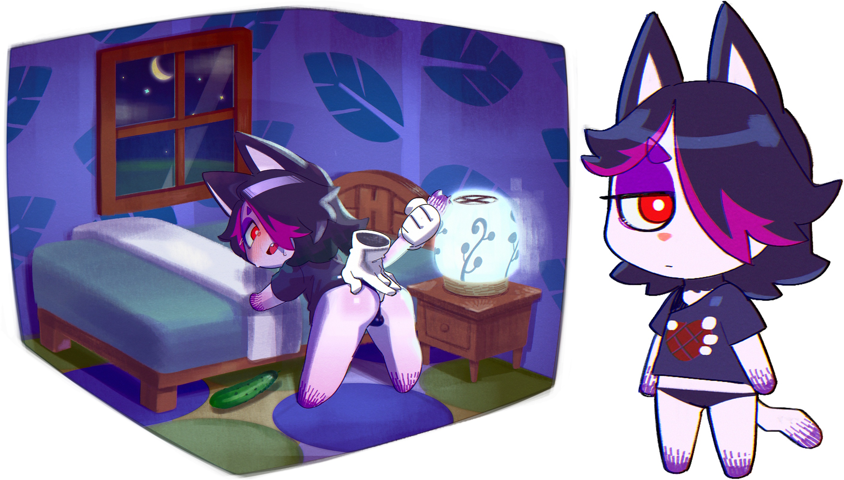 >>78515632This one simple cat completely blows any of the official Animal Crossing character designs out of the water, at least in my humble opinion. He's really cute and I dig all of the alt style aesthetic choices put into his design.