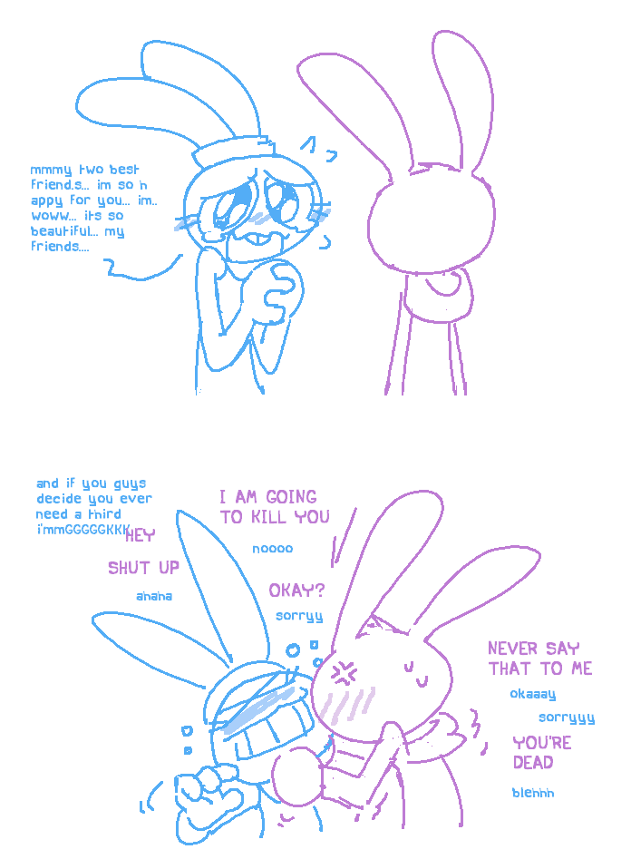 >>78484143Part of me agrees only because it's drawn people that don't care about the story or AU in general and only like the bunnies like Kessler. His art was great but personally I prefer more people actually getting interested in the AU than just 'bnuuy sexo' or 'heccin bunner'