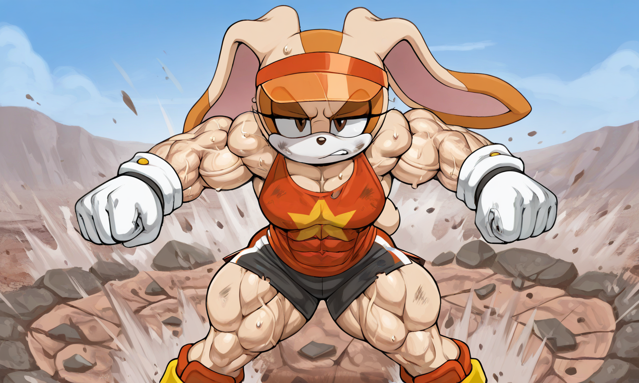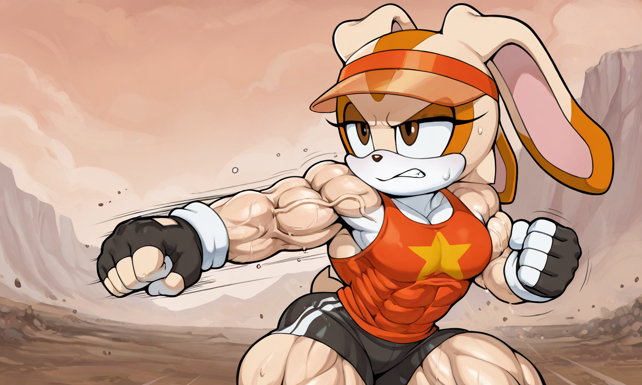 >>78553195Muscle growth lends itself for action, I'm always a fan of them wanting to be stronger for some kind of action focused goal like just being better at fighting bad guys or protecting others and realizing they enjoyed the process too. For example, for a buff Cream, I like to imagine that she wanted to be better prepared to fight villains, to be taken seriously by her friends and to not depend on heroes like Sonic or Knuckles to save her, only to end up absolutely jacked by sheer training and maybe some extra help from someone like Tails and his tech