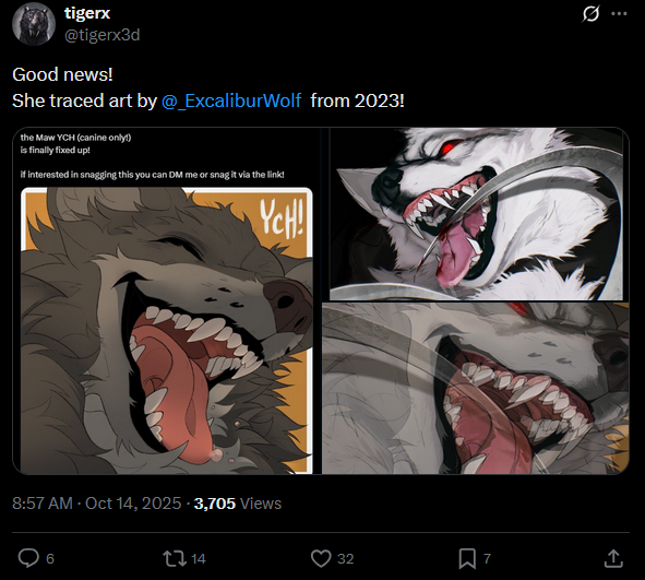 >3.5 MILLION views.Imagine blowing this opportunity to DMCA and then getting exposed for being an AI tracing hypocrite instead of just getting more single-time exposure than some of the biggest artists on the Internet.