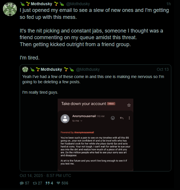>>78551548Update: Mothdusky locked down their X account.