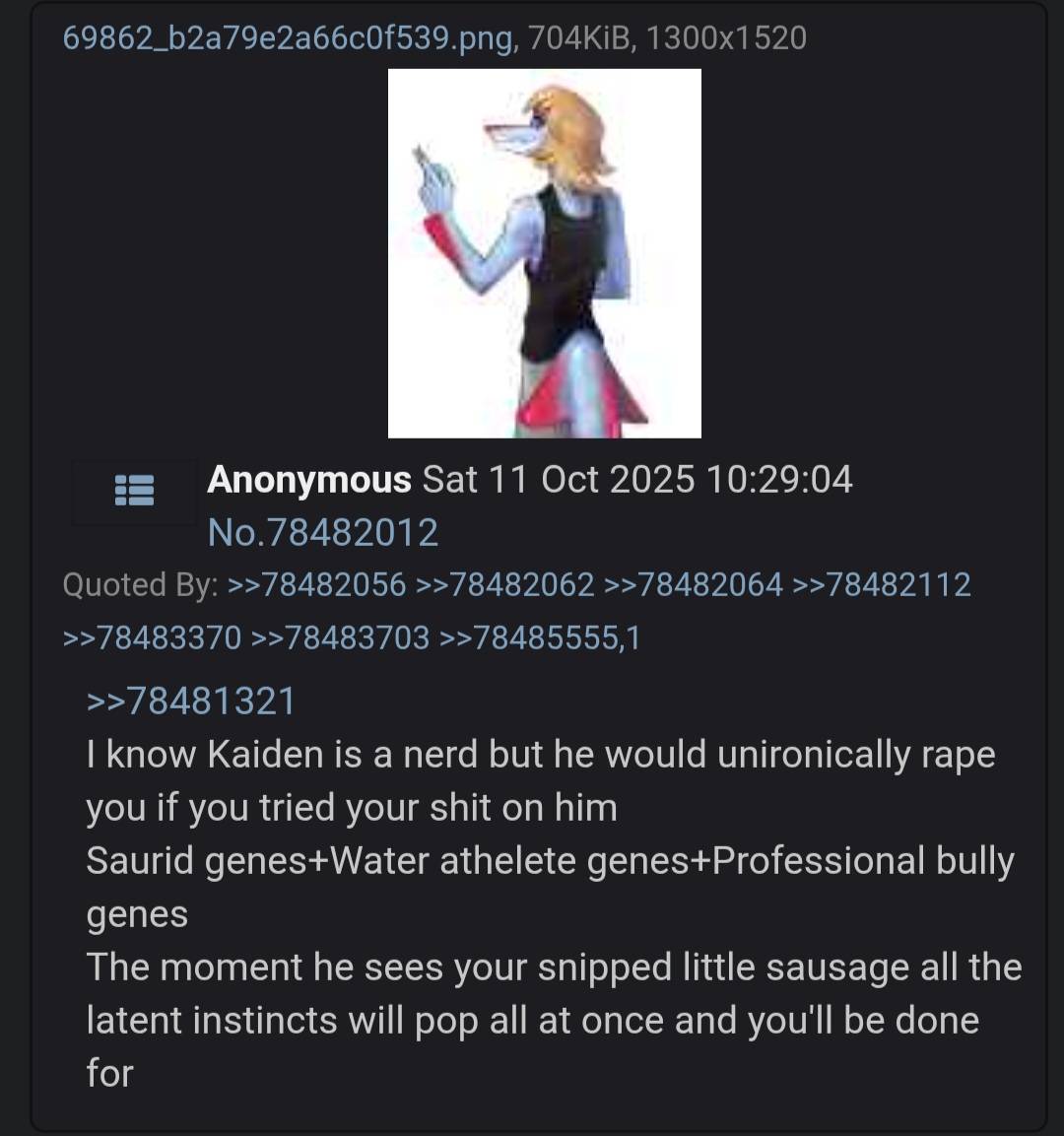 >>78562503>>78562507Besides the rage bait, I doubt people would even want to see that.
