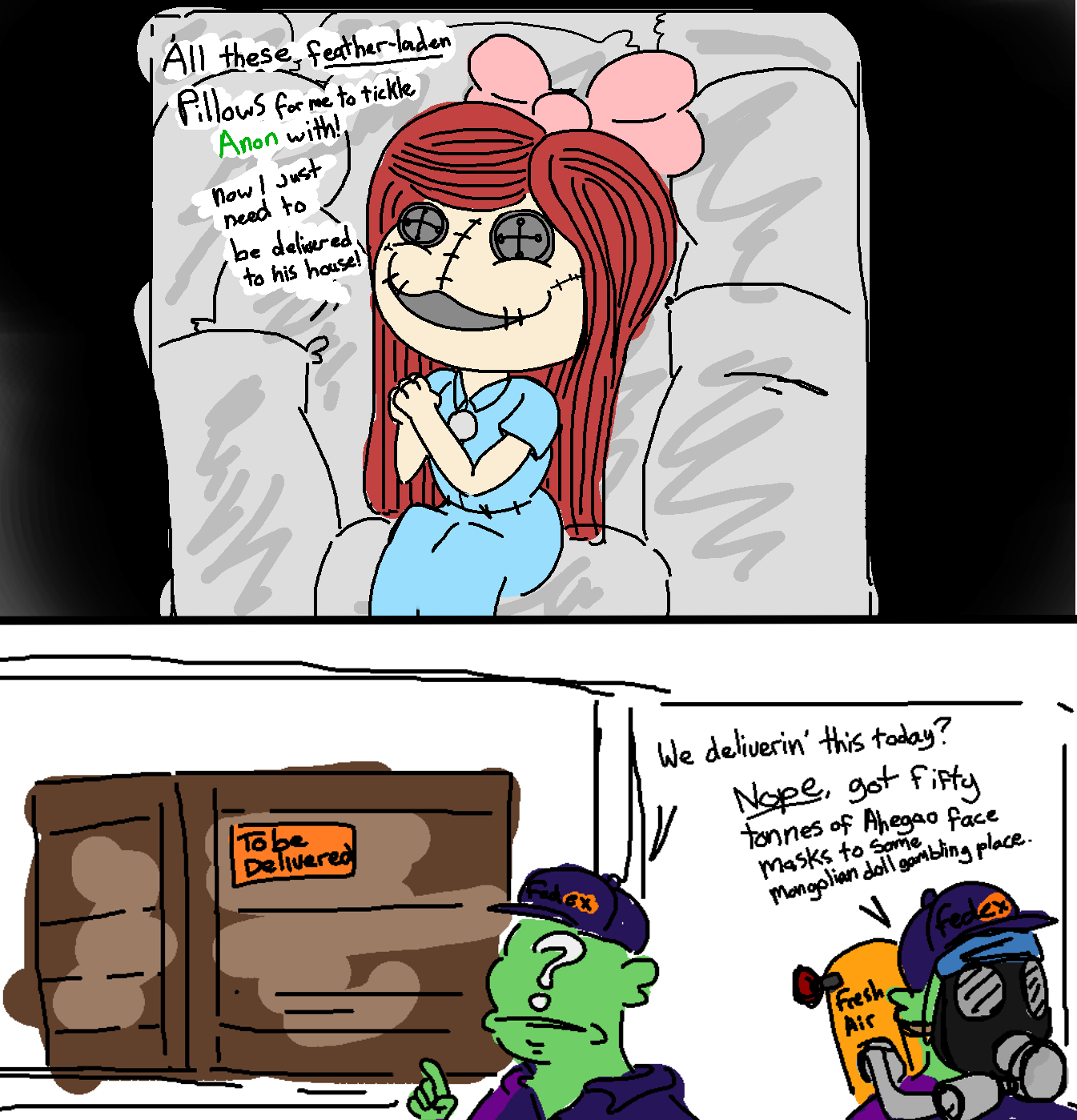 >>78689395Draw any doll girl of your choosing sleeping soundly in a pillow. Do any pose you'd like for her. I just wanna see more cute dolls doing cute things.