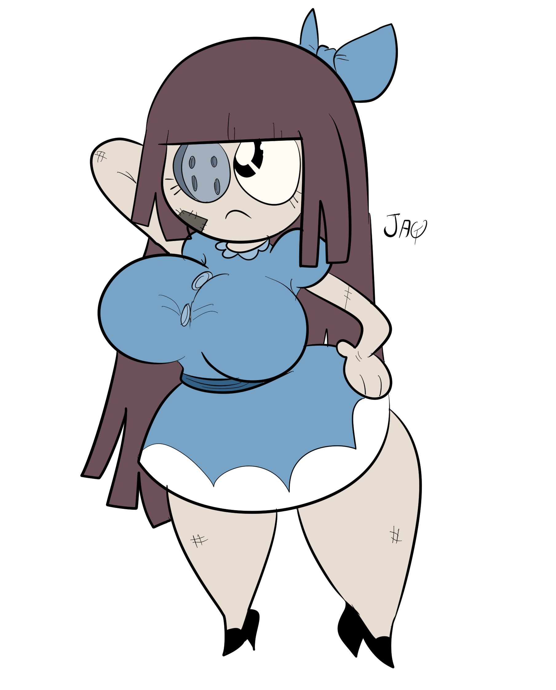If there was more button eye doll waifus, would you prefer a soft cuddly version with a slim body or a stuffed thicc version with big tits and ass?