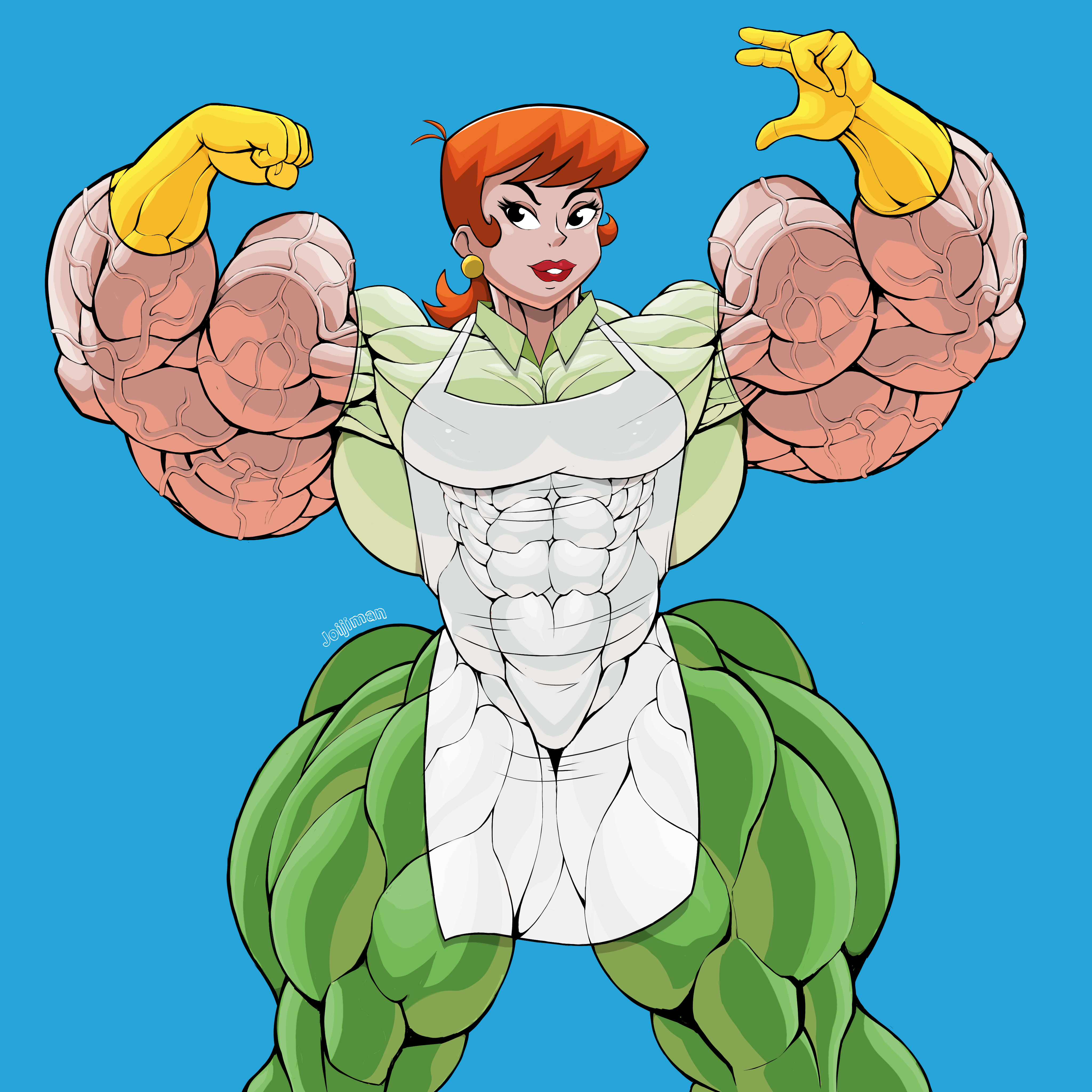 I love muscular toon gals, the dichotomy between a cute, lovable face and a huge, striated body of pure might is absolute unf. Plus, it gives reasoning behind that absurd toon strength