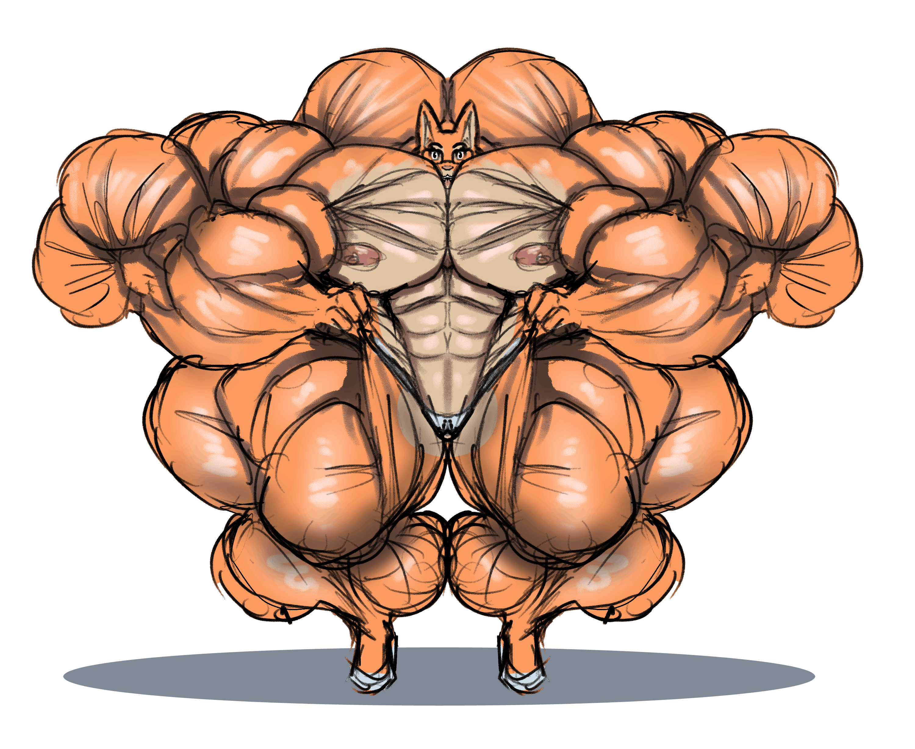 >>78843261Artist is rchammer5, unfortunately he mostly does fat and macro, not much muscle art. This is the only other doe gal I've got from him