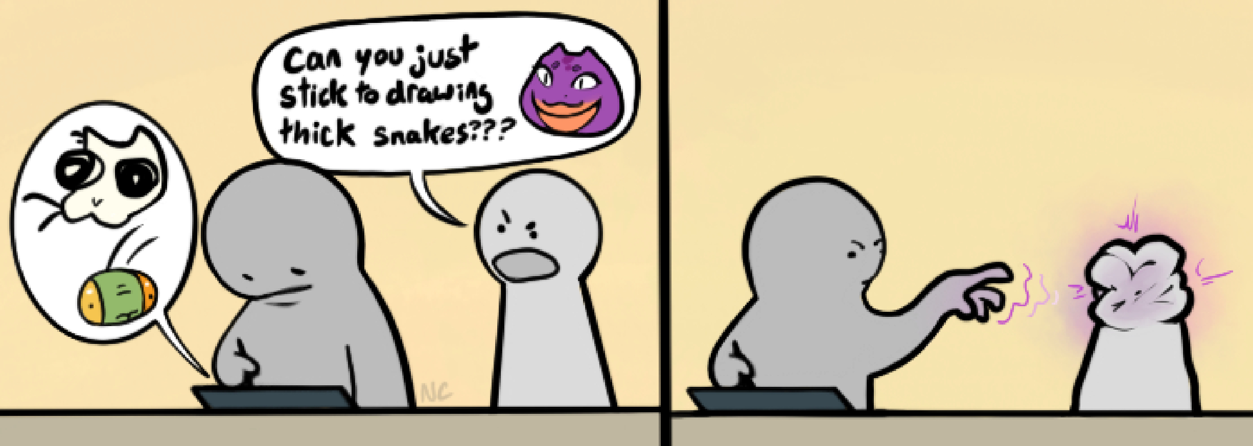 >>78878845NCS_Artist is cute and does cute work, but he's one of those guys I can't say I'd trust with anything "big."Let me put it this way, NCS does great with capturing emotion, but as far as keeping my attention, he just can't by virtue of everything me makes being so short and so similar. I've seen all this before and I saw it the entire time over the pandemic, so I can't fault people for losing interest. A lot of these artists never take that "next step" because they grow so comfortable in their niches and things they usually do that it becomes hard to break out of. Not necessarily a bad thing,... although it can be.Past a certain point you talk so much you stop saying anything, say something once, why say it again?
