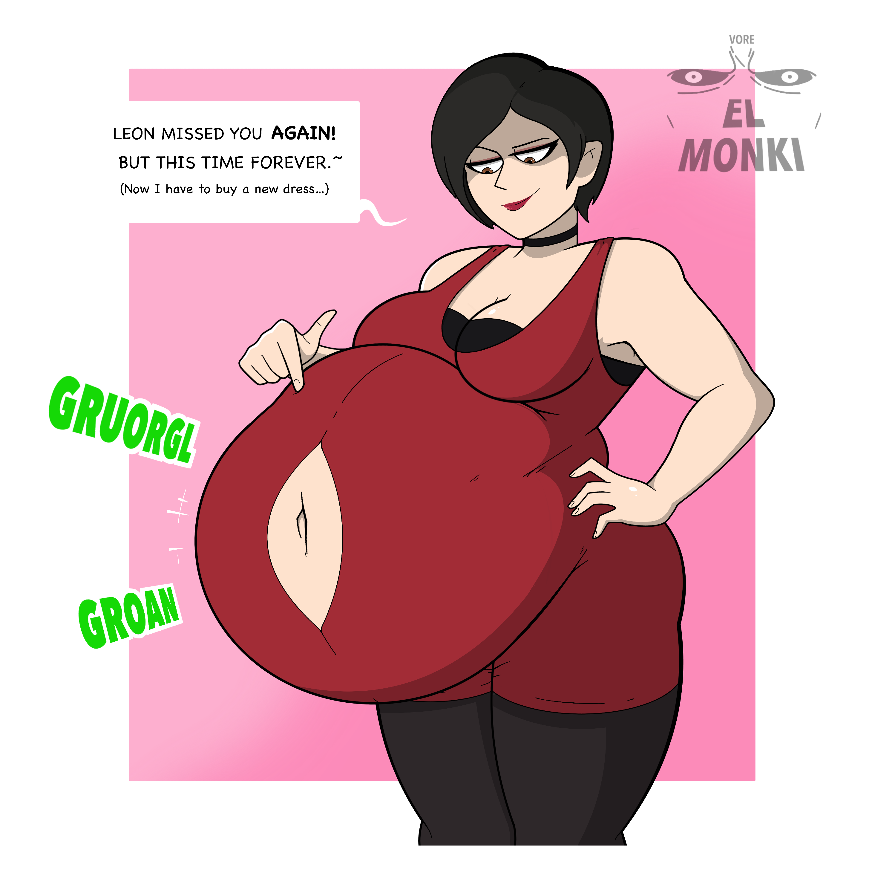 >>79130344Mmm~ That's it... Churn into fat just like that...>Ada bit her lip as she felt him melt away into nutritious chyme. Her belly became loose and sloshy with his liquidated remains on full display as it crashed into her lined stomach. She lifts her sagging and sloshy belly. Feeling how flabby and filled it was before dropping it. Feeling it ripple and bounce throughout her waist. As she was playing her gut, she felt something rise up within her. It was starting to clog her throat before she belted it out.>BWWUUUUUUURRRRRRRRRRROOOOOOOOOOOOOAAAAAAAARRRRRRRRRROOOOOOAAAAAPPPPP!!!!!>A loud and powerful belch that crackled for all to hear. Inflating her mouth to let that escaping gas go free as a final reminder that she was done with her food. One thing did exit alongside her hot air. The remains of Anon's clothes. Now soaking wet full of chyme, bile, acid, saliva, and whatever bodily fluids were within her abdomen splashed unto the ground. Clearly eaten away as much as him. Full of holes as it was enough to penetrate through the synthetic fabrics. Before she knew it, her very own fabric started to tear as he made his way inside of her through distributing his matter in her ass, thighs, breasts, love handles, and a belly that was paunch enough to squeeze. It wasn't too severe damage wise but her ass and breasts were on display after breaking free of their hugging prisons.Looks like that's all of you that made it. I'm sure there's some bone shards floating away but there's nothing like a lengthy passing might fix. Hmm... You were much bigger than I thought you'd be. You must've added at least 100 lbs to my figure!>Ada blushed as she turned away to see how much of a whale he's made her. A meal and a boobjob was what were offered. Not a job at SeaWorld!I bet that bastard would smile like a dope if you could see me now. Whatever, I'll improvise. Plenty of chubby chasers out there who would die for a woman like me now. Literally~>She sly grins as she walks off.