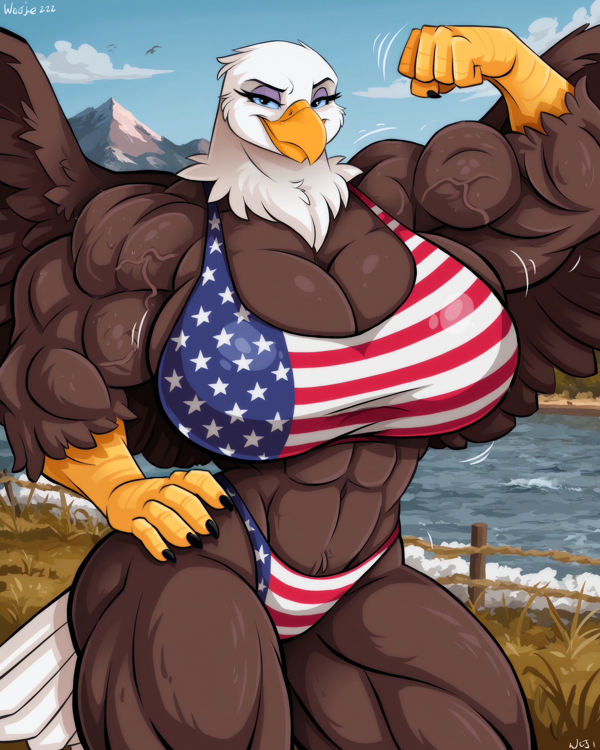 >>79157264Requesting a big muscular bald eagle girl.