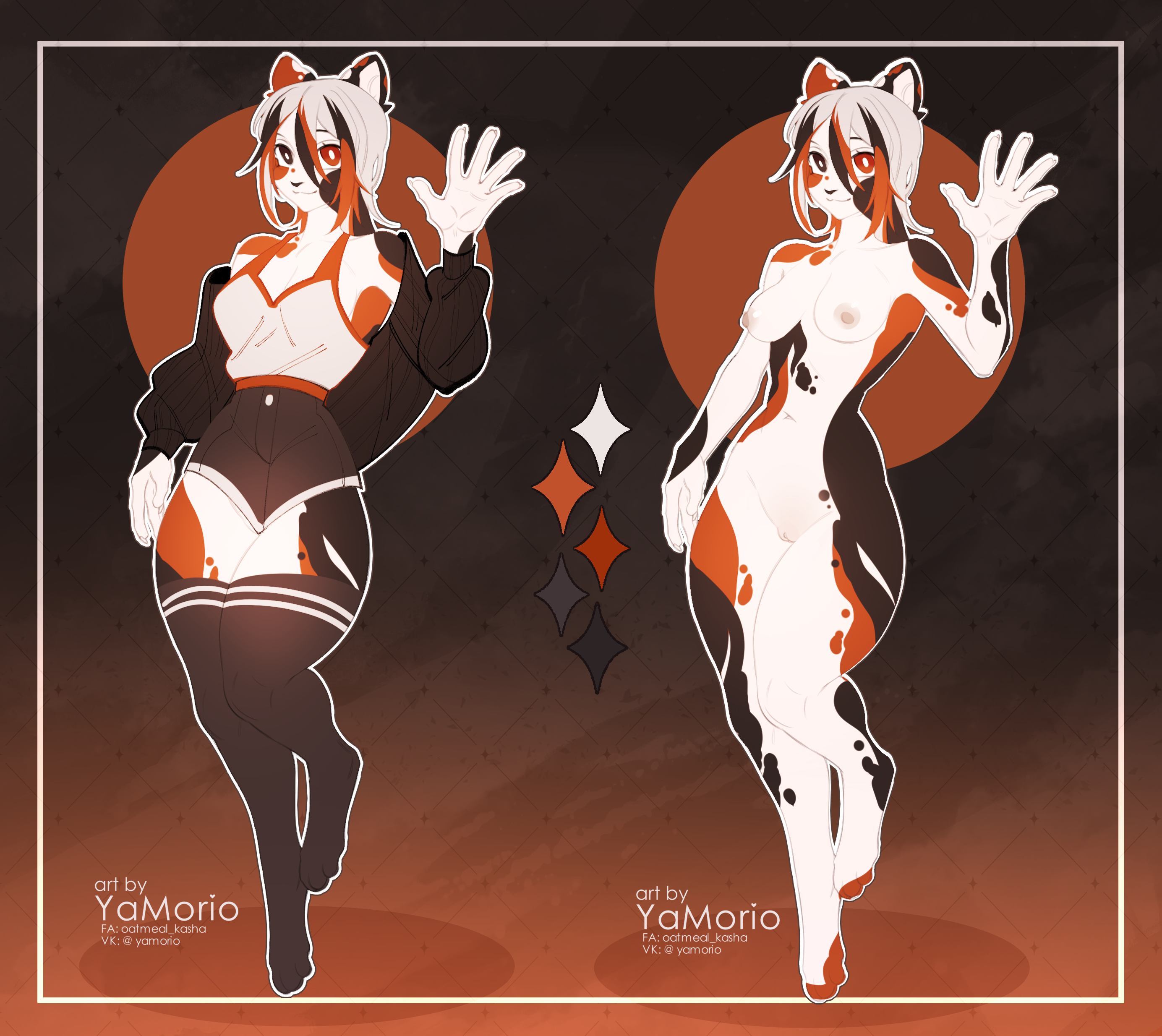 >>79226045Requesting Callie, my bobtail calico cat gymnast doing a standing vertical split, showing off her feline flexibility! I don't actually expect her to get drawn because calico patterns are a bitch, but hey.If the artist has other ideas, I'm open to suggestions!>Does your OC celebrate Thanksgiving? Why or why not?Not really, she sees her family often and they've never been big on Turkeyday. Usually she just doesn't see the point in it.>What’s their ideal way to spend the holiday—big family gathering, with friends or quiet time alone?With friends or quiet time alone. Usually drinking a bit if she's alone.>Do they prefer warm drinks (cider, mulled wine, hot chocolate)?Hot chocolate is fantastic, but if she's going to have a warm alcoholic, it'll be something with rum.>Do they dress up formerly or do they go as is?If she's going to be going to a Thanksgiving dinner, it's going to be looking nice, because it's going to be a formal affair in the first place. Probably matching the dress code of the crowd, but a little more showy