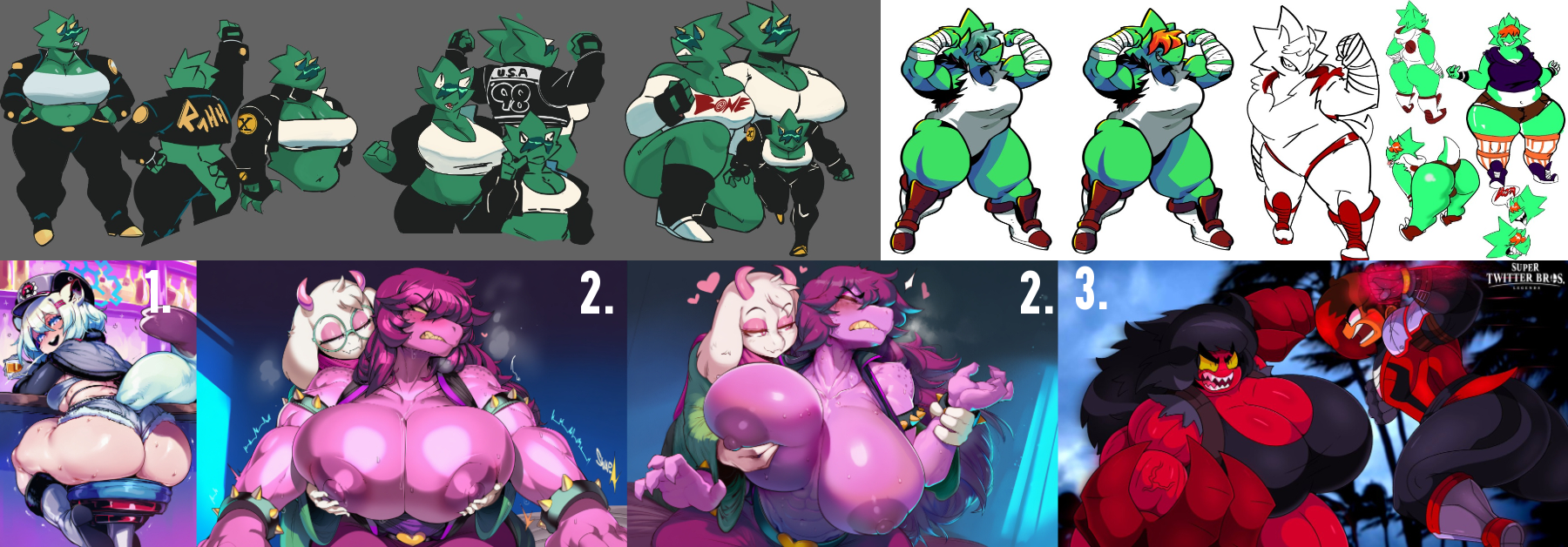 >>79388527Hey hog, nice to see ou again. How's it goin?>>79326967Sorry for leaving you hanging. 1. She's a purple gal. But if given a choice for additional colors it would be black, peach and white.2. Despite having a strong ulitilty of moves and big build she is mostly susceptible to real zones.Slightly slow since she barely qualifies as a medium weight fighter. If she were to be a fighting game character she would not be a easy character to use. 3. With ease she can lift a car with just one arm at max strength she can lift a big city building and towers but would mostly likely damage herself in the process.