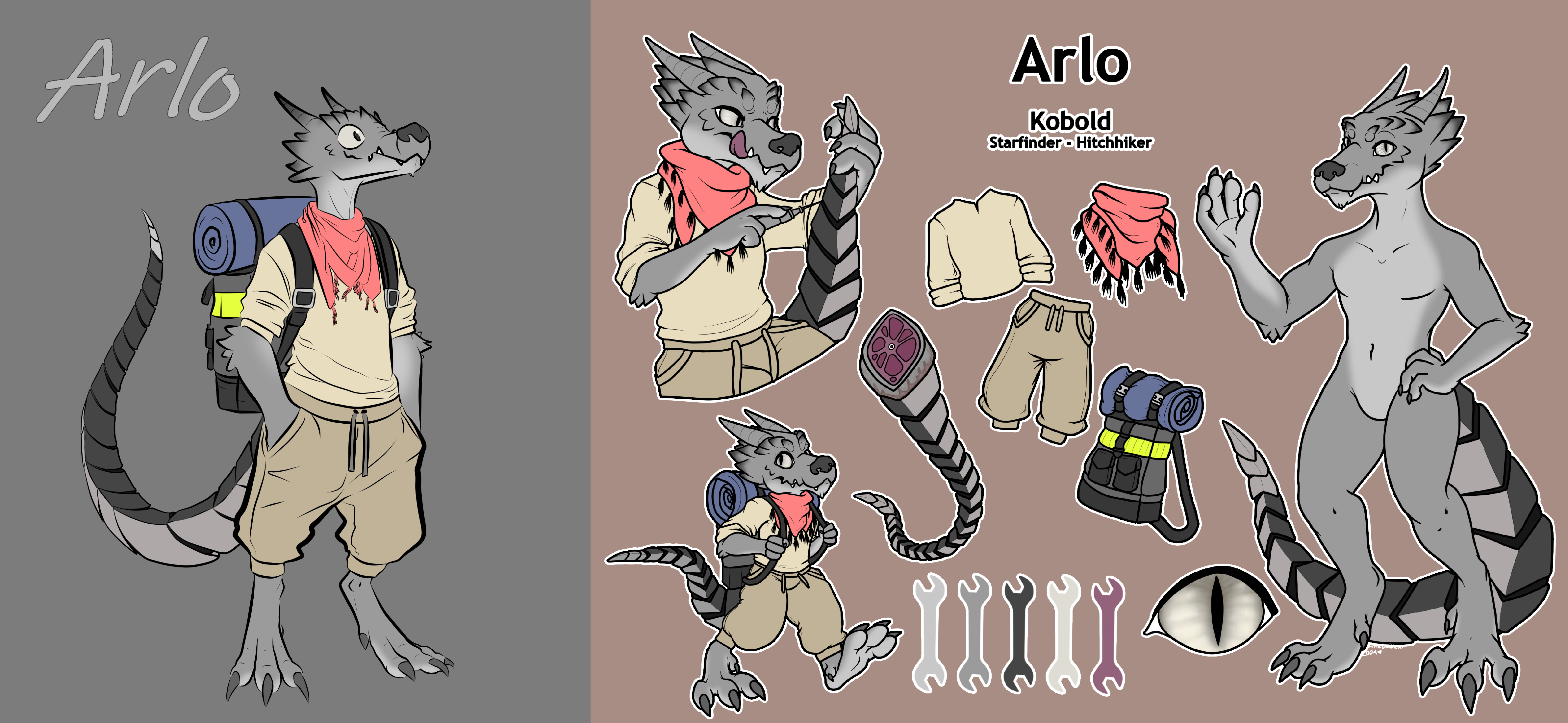 >>79250705It is! When he was witchwarped into the starfinder setting like some kobolds were, he was teleported in at a large height and landed directly on his tail, causing a ton of damage. He was found by a half-elf cyberneticist who fixed him up, replaced his completely crippled tail, taught him proper values, and then released him upon the universe to explore