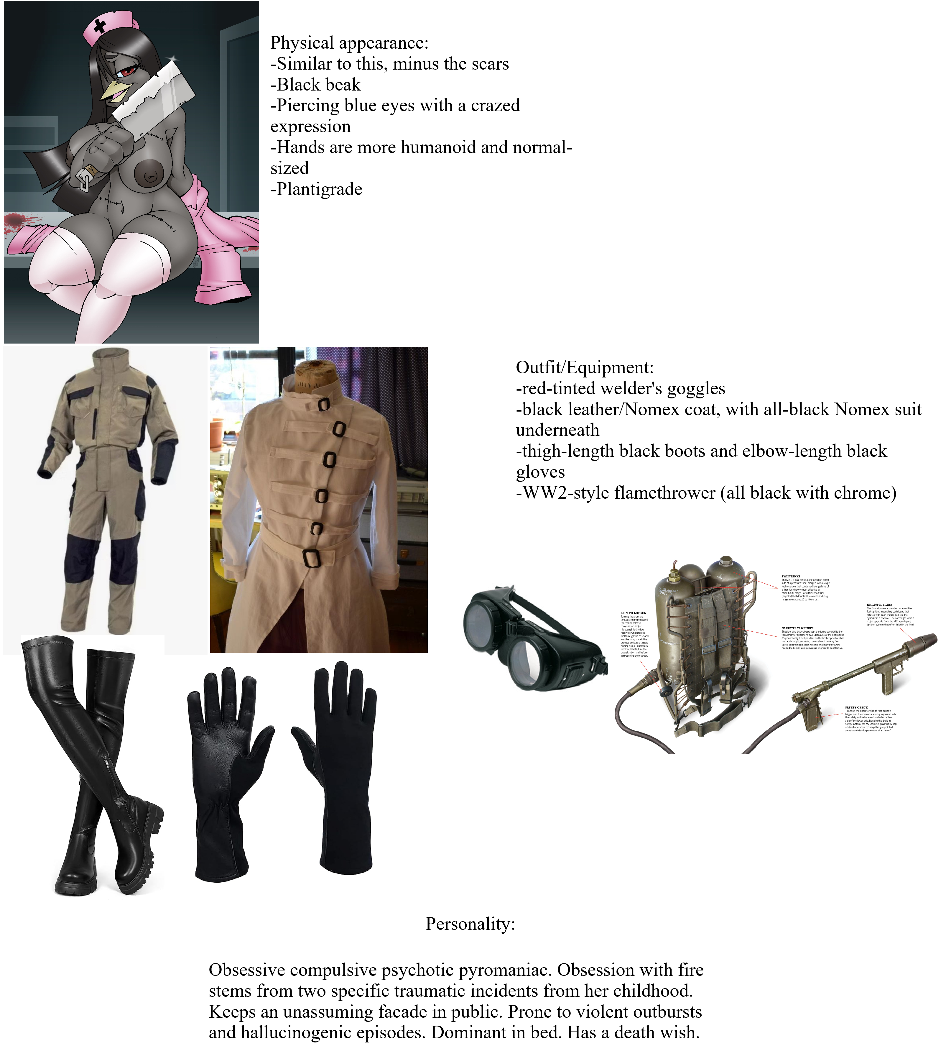 >>79226045Requesting this pyromaniac bird ecstatically firing off her flamethrower. >Does your OC celebrate Thanksgiving? Why or why not?She attends every year at her parents house, but she doesn’t feel very strongly about it one way or another.>What’s your OC’s favorite Thanksgiving food? Least favorite?Stuffing. Least favorite is pumpkin pie.>Do they help cook, or do they avoid the kitchen entirely?She lets her family handle the food (she’s not a great cook)>What dish would they bring to a Thanksgiving potluck?Charred tray of cornbread (she made it during one of her psychotic episodes with her flamethrower)>What’s their ideal way to spend the holiday—big family gathering, with friends or quiet time alone?With her family. >Do they eat fast?She’s slow and calculated with her eating.>Do they have the capacity to eat the whole dinner table filled with food?Nah. Her psychotic side maybe.>Do they prefer warm drinks (cider, mulled wine, hot chocolate)?Hot chocolate with whipped cream and marshmallows.>If they do drink do they wind up going home drunk for hours?She rarely ever drinks.>Do they dress up formerly or do they go as is?She dresses formally for the occasion.
