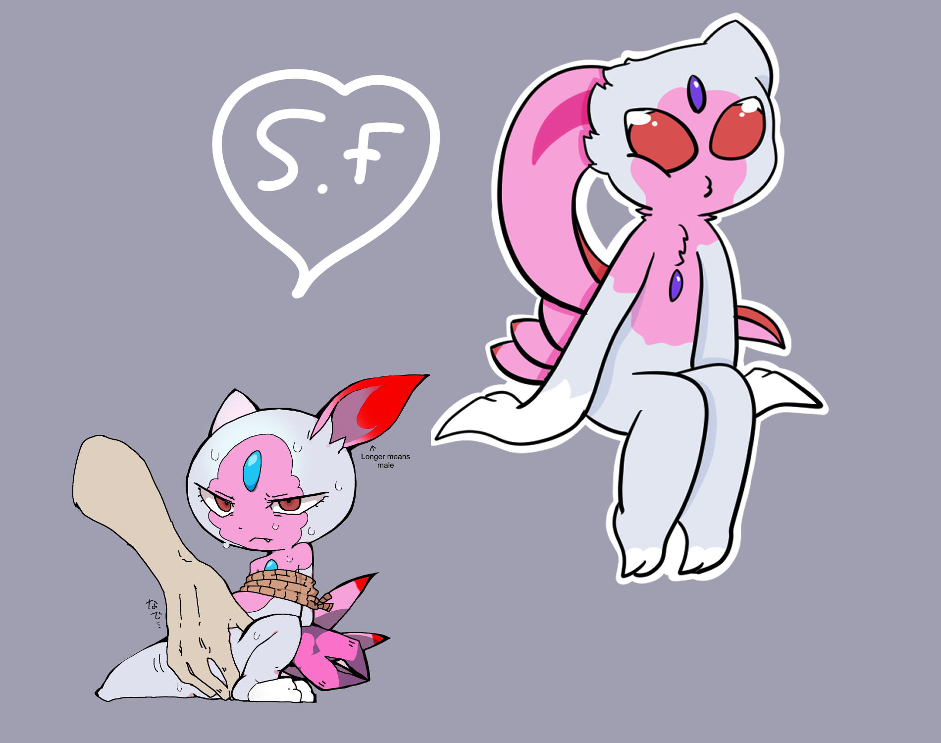 >>79226045this is a bit awkward, but the concept is for my hisuian sneasler/sneasel hybrid. Think something similar to the left. (more hisuian sneasel like in proportions including eyes), but keeping the long ear, and colors. Looking cute and funny.