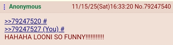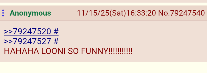 >>79247520>>79247527HAHAHA LOONI SO FUNNY!!!!!!!!!!!