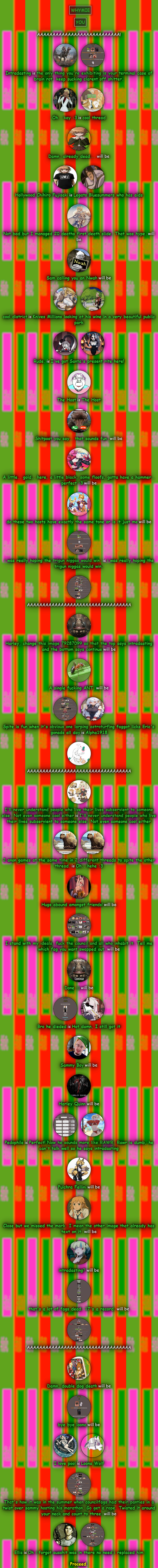 >>79286995HELLOOOOOO BURGERTRANNY DID ERIC TELL YOU TO HOST LIKE A GOOD COUNCIL PUP? I THOUGHT YOU WERE HERE TO LE OWN THE COUNCIL WHY SUPPORT TROONS LIKE CLARENT? AKA SHIGURE AKA IOWA'S FUCK BUDDY AND KAMINA'S SHITPOSTING PAL