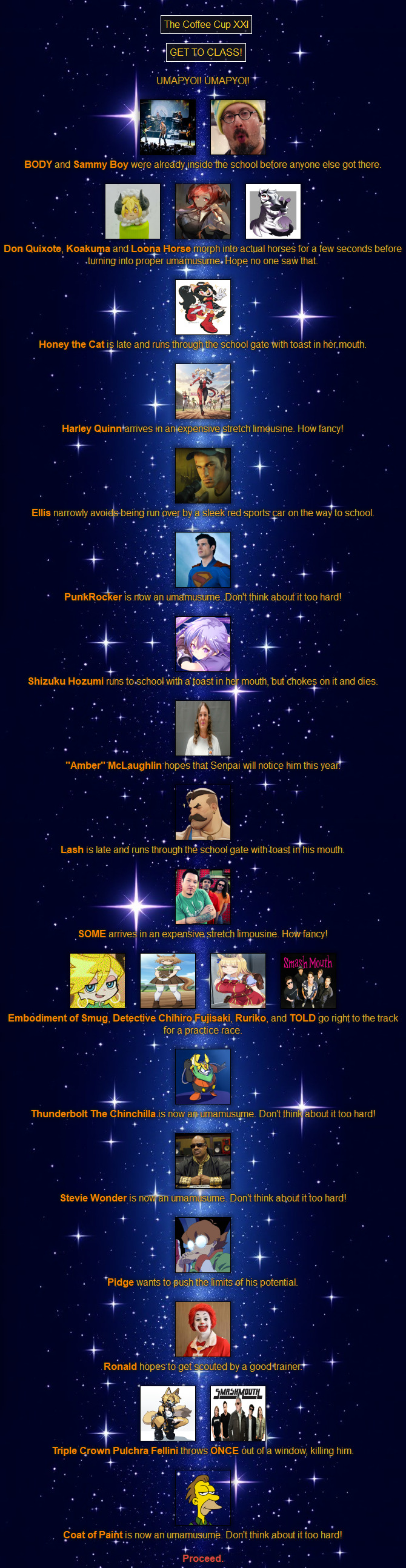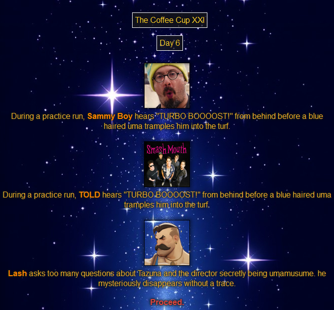 >>79289134Lunch at Tracen brings us to the final four runners!>>79289186A thread is a thread to me, but I might finish this game here. Should be able to.