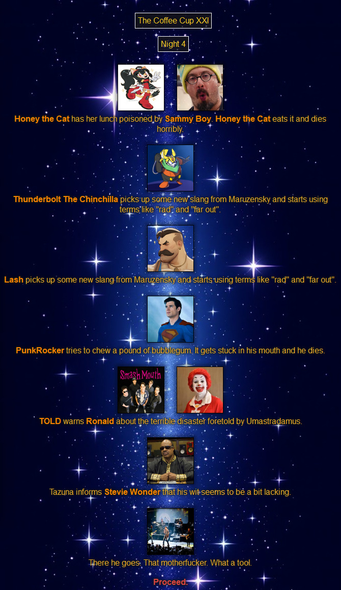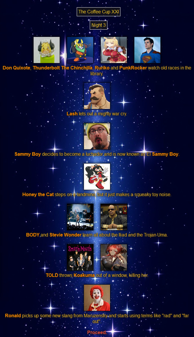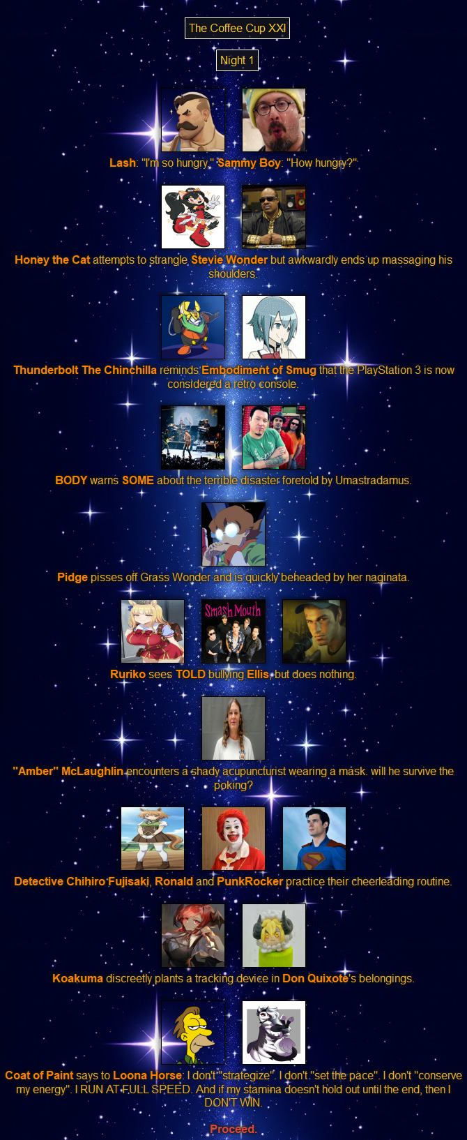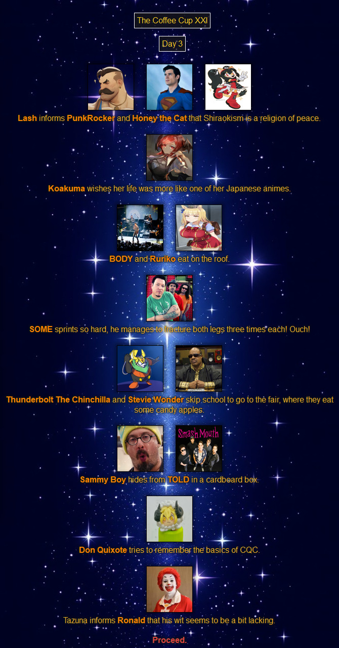 >>79289374Oh come on! How can that guy be part of the fight?! He can't even see!>The Lash graciously gives his thanks for hosting.